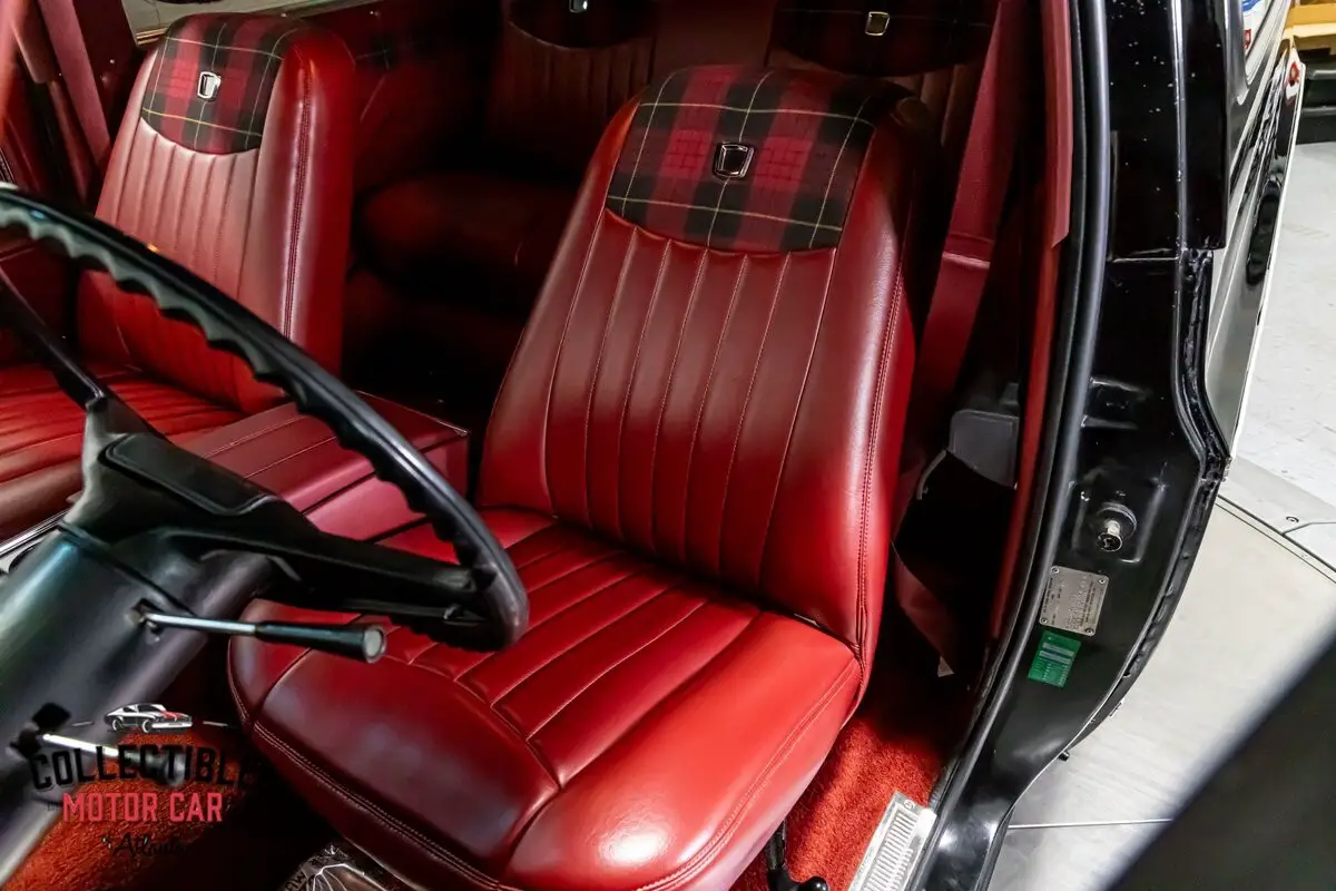 Inside, it's been completely modernized without losing the vintage vibe: new custom interior in a rich burgundy tone with plaid insert accents, upgraded audio with a RetroSound Bluetooth head unit, Rockford Fosgate components, and a 10" subwoofer in a custom enclosure. It also retains factory A/C, which is a must-have if you actually plan to use and enjoy your K5.
