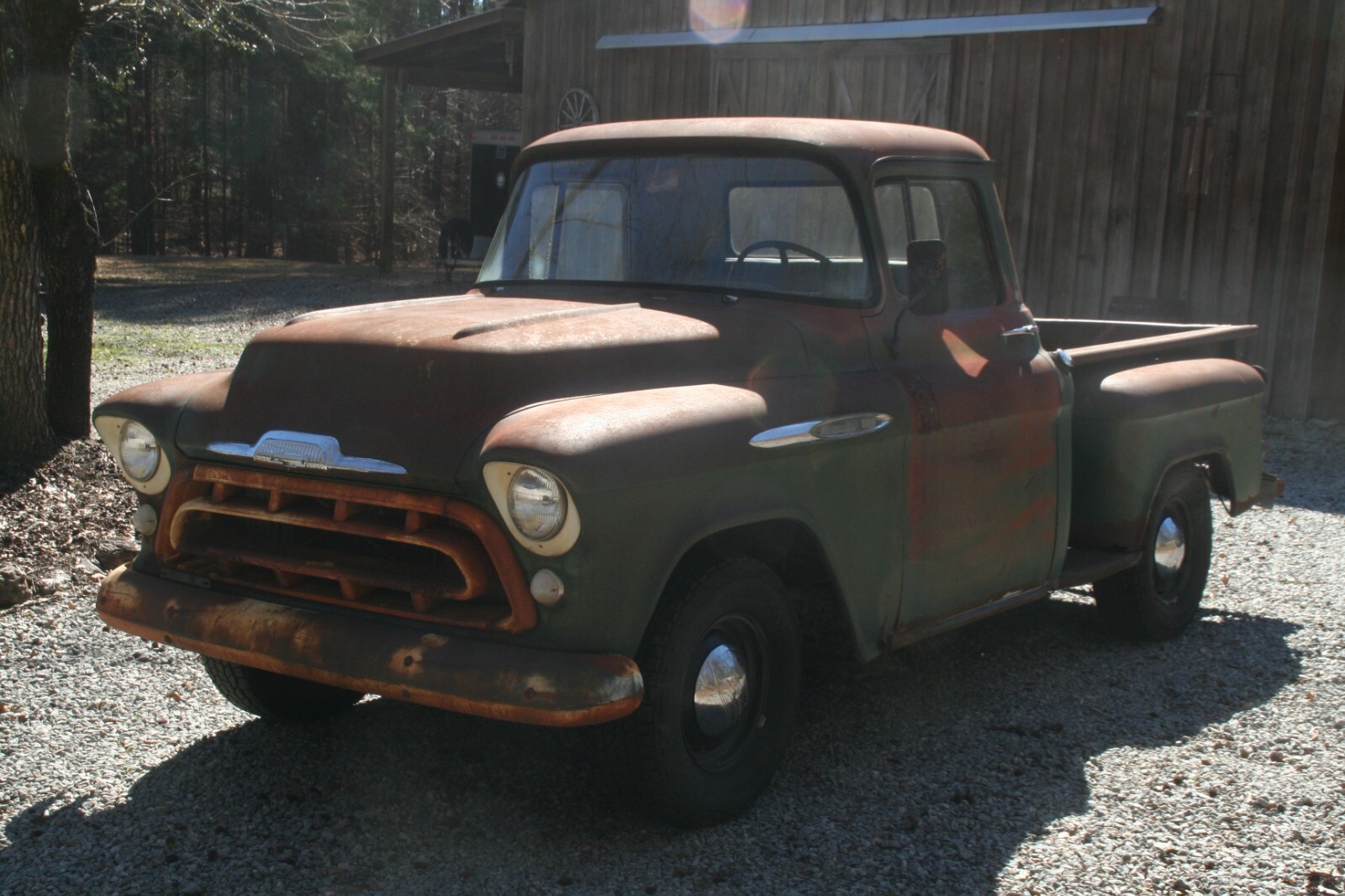 For Your consideration is a 1957 Chevrolet Series 3100 Short Bed Step Side. Predecessor To The Apache. A Mere 64.091 Original Miles on Her. 235 – 140 hp – 3 Speed Manual Column Shift. And the Very Cool Original Starter Pedal. Fires Right up. Original Choke Pull all Functioning Perfectly. Runs Like a Sewing Machine. This is an Untouched Original Vintage Chevrolet Truck That Was Owned By The University of Georgia. (UGA). And Used by the United States Department Of Agriculture Extension Service. (USDA). Super Nice Patina With a Shadow of USDA Still Visible On the Doors. Has the Original Oak Bed. Amazing Find. You Can Drive this Truck Home. New Plugs New Points New Brakes and Lines New Battery New Tires New Hoses and Belts New Oil and Filter Everything Works as it Should Amazing Blast From the Past That Has Emerged Out Of Georgia After 70 Years !