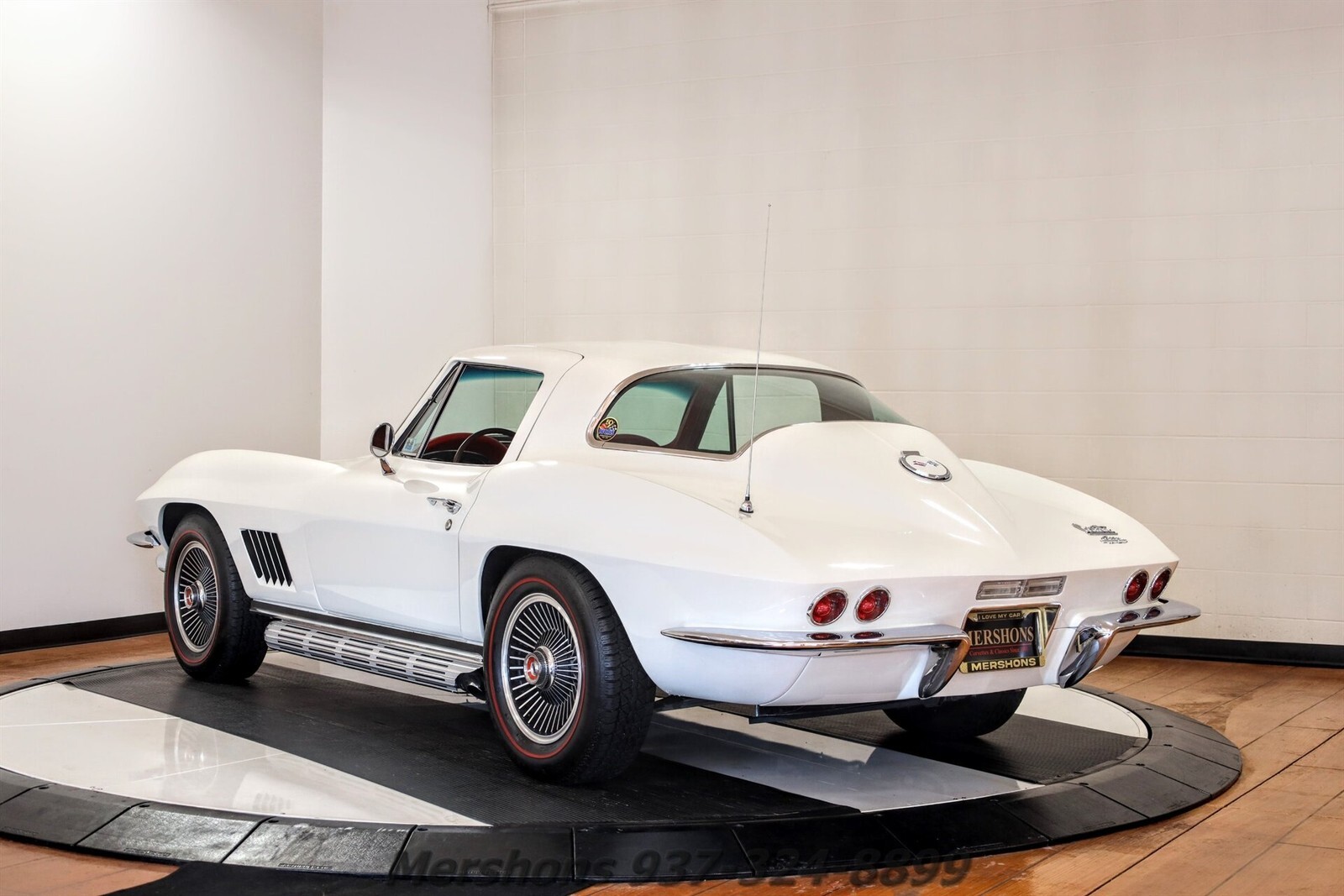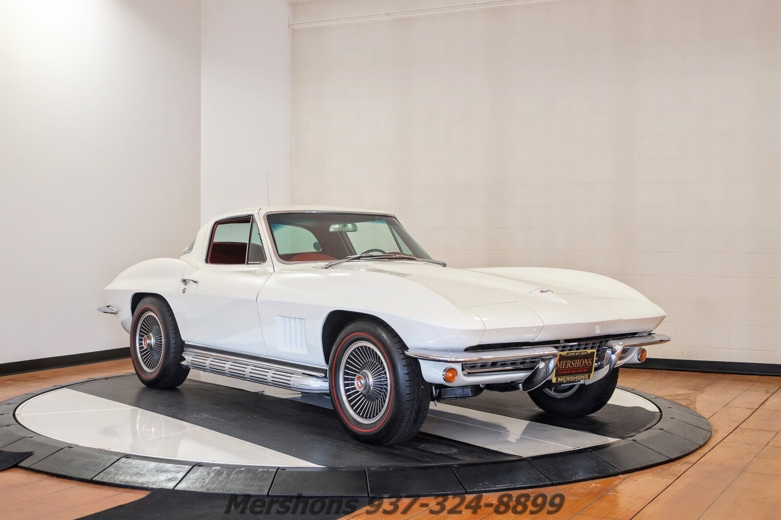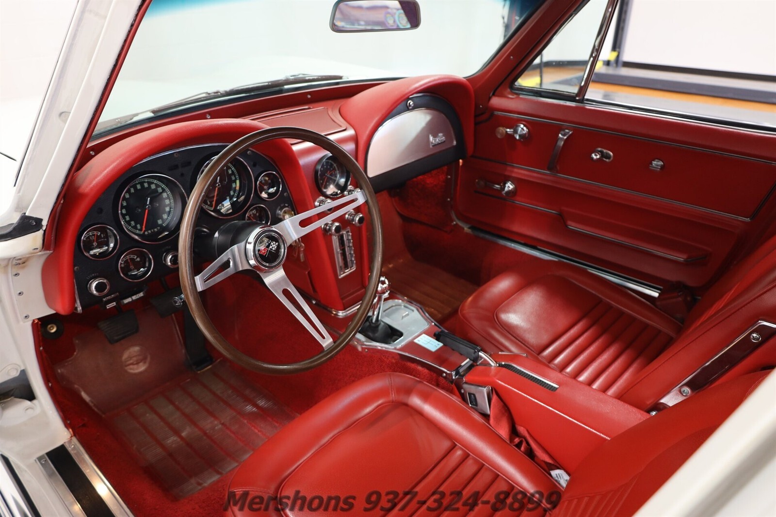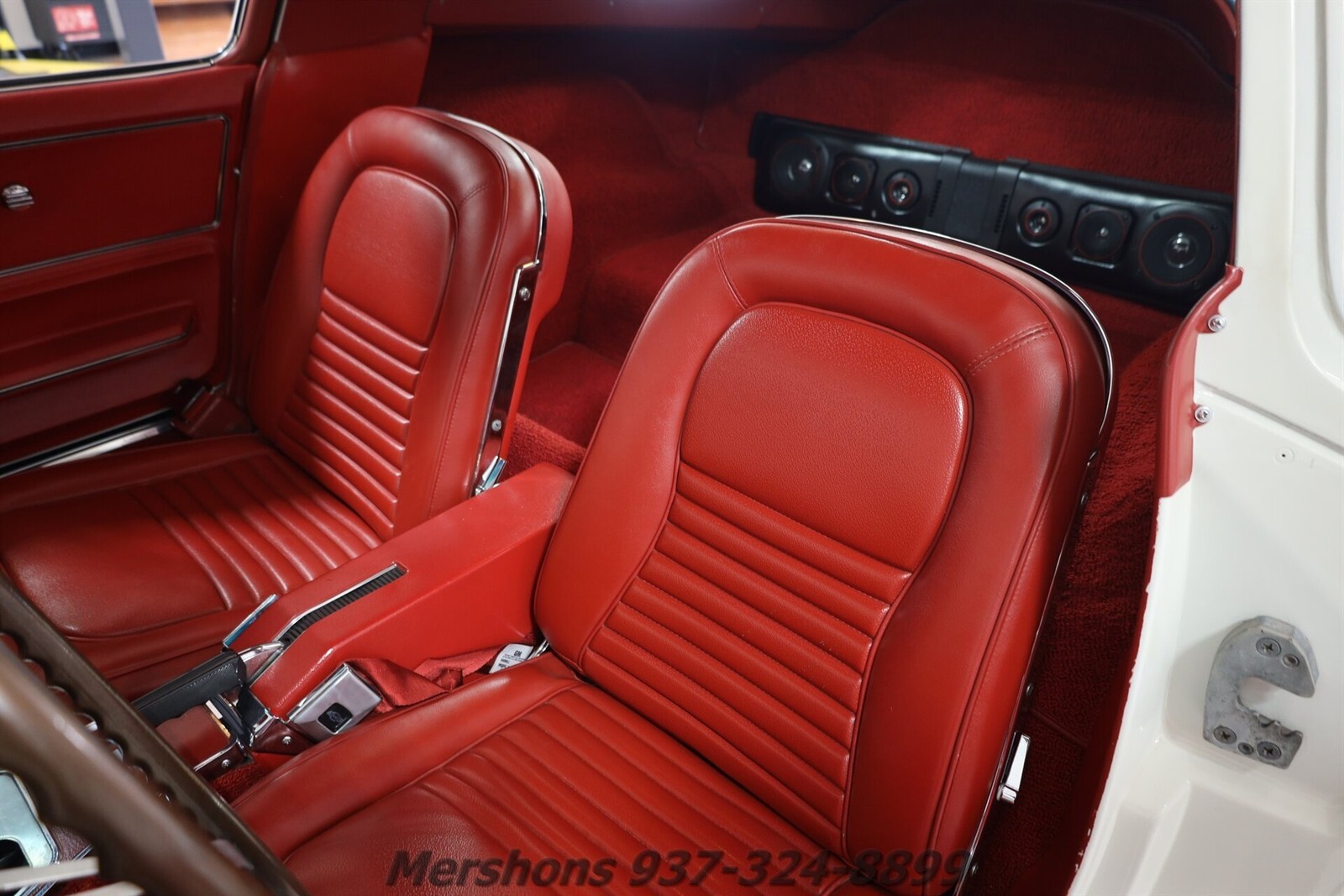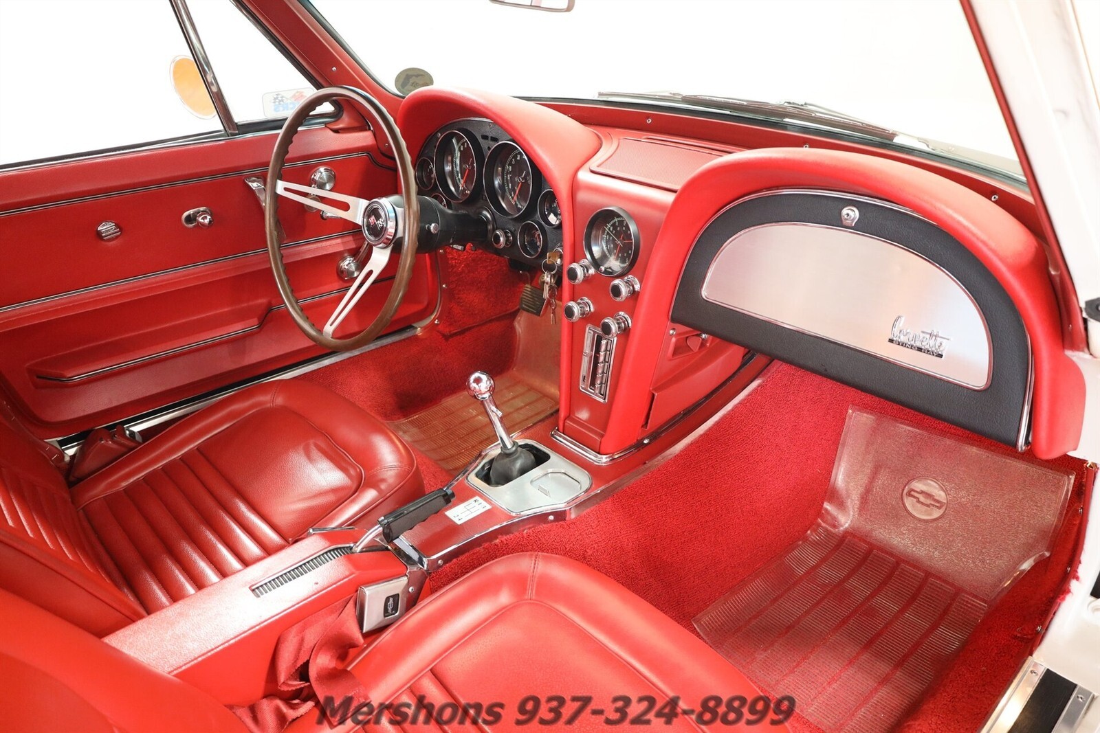 Color Code 972 Ermine White over Trim Code 407 Red Interior. Casting Number '3892657' HT Suffix Block. Numbers Matching 327 350 HP 4 Speed. Many Factory Correct type components including Power Steering, ignition shielding, air cleaner, Harrison radiator and expansion tank, Reverse Lockout shifter, dash pads, door panels, Bolt on wheels with Redline Radials and more. This is one of the BEST Color Combinations on any Corvette! Great Cosmetics, Beautiful Stainless and Chrome! Immaculate Interior! Clean and Dry Undercarriage. Very Tight, with great gaps! Numbers Matching Transmission and Date Code Correct 3.55 Rear end! An L79 Corvette Coupe is an Excellent investment piece, and they do not last long here at Mershons! So please give us a call today for more detailed information on this Gorgeous Mid-Year!