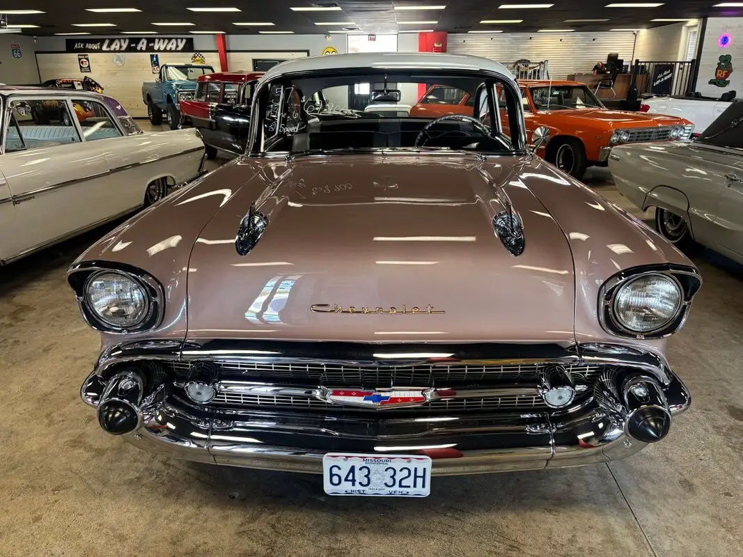 This 1957 Chevrolet Bel Air 2-door post captures the essence of the iconic Tri-Five era, blending classic design with restored craftsmanship. Finished in striking Dusk Pearl and complemented by a black cloth interior with a comfortable bench seat, it offers timeless style inside and out. Under the hood, a 235 in-line 6 engine paired with a C4 transmission delivers smooth, reliable performance, making it enjoyable for both shows and cruising.