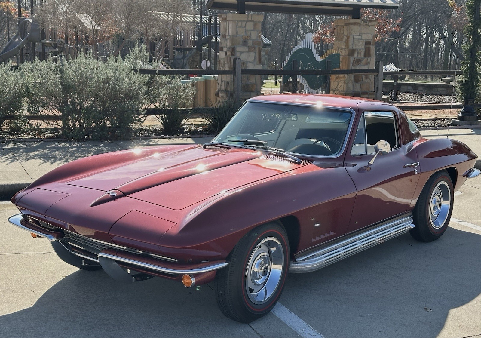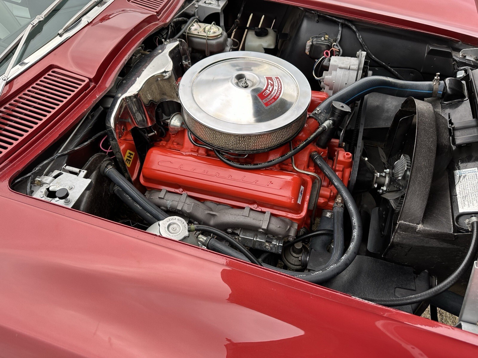I purchased this card 35 years ago. In 2012 a began a complete and thorough body off, not and bolt restoration. Over the next several years, I took meticulous steps to ensure everything I accomplish was up to factory original standards using NOS parts and GM restoration parts when available. Once completed, I have continued to maintain its originality, winning many awards and trophies at classic car shows.57,000 Original MilesOriginal, matching numbers, 327/300hp.Original Muncie four speed M 20 transmissionOriginal 3.36 posse track G81 rear end ratioCorrect 98 988 Marlboro maroon base-coat clear-coat paintPowder coated frame restoration in original semi gloss blackAccessory side pipesCorrect rally wheelsFactory power steeringOriginal use 60 9 AM FM radio restored by Roger ReedNo correct 455 black and white interior and carpet as initially installed at the factoryEngine worked by Wayne Calvert engines, including new camshaft, timing, gear and chain, valves and valve guides, oil pump, water pump, starter, alternator, spark, plug, and wires, coil, points, distributor, cap, and radiatorNew brakes, tie, rod ends, A-arm, bushings, body mounts, shock, absorbers, and ball jointsRebuilt, headlight motorsNew front to back wiring, harnesses, including engineOriginal complete stainless steel spark plug wire covers(ignition shielding)Re-chromed bumpersNew gas tank and sending unit(partial original gas tank sticker included)New tail lightsOriginal style clear Chevrolet floor matsNew weatherstripping, window, fuzzies, and rubbers, including vent windowsNew correct 7.15–15BF Goodrich redline tires from Coker tireInstrument cluster, glove box door and quartz conversion clock restored by Roger ReedCalifornia car cover includedThis 1967 Corvette is in perfect factory original condition and ready for a new home starts, runs, and drives like new – you won’t be disappointed. Located in Little Elm, Texas, just north of Dallas, Texas.Video upon request