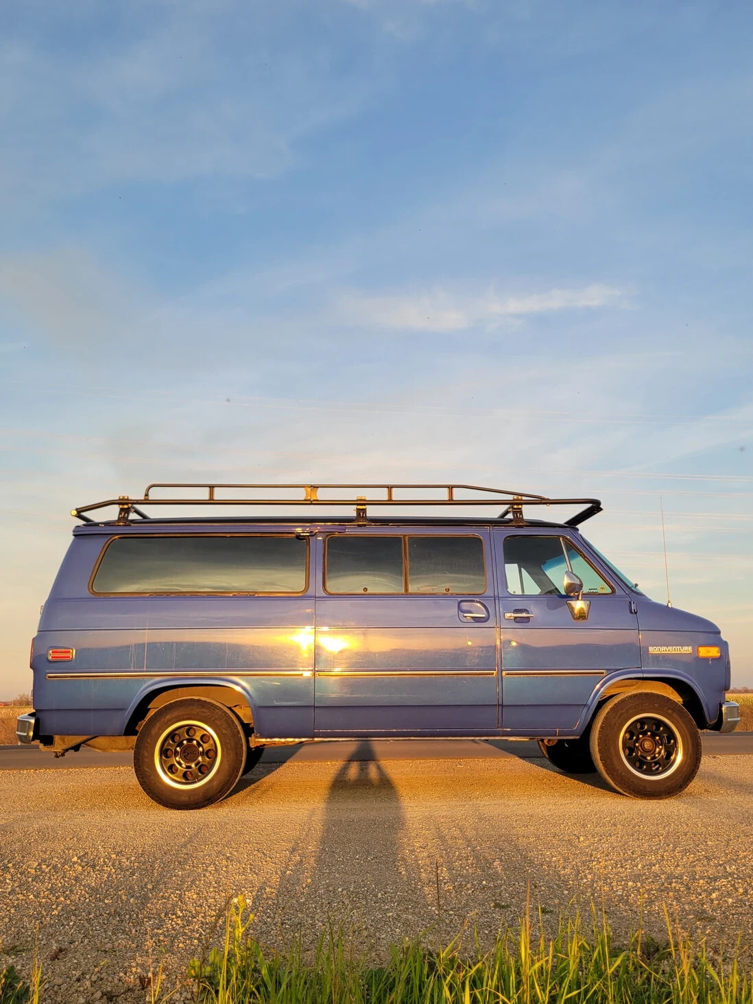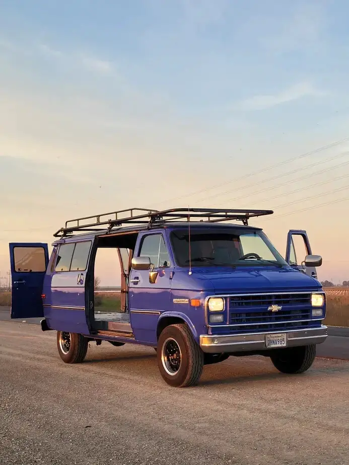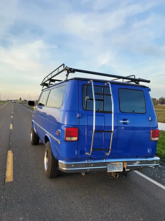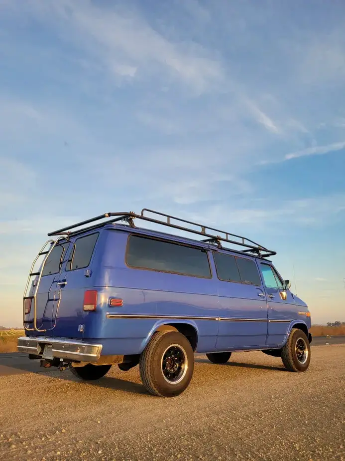 This 1988 Chevrolet Bonaventure 1 ton van is powered by a throttle body injected 5.7 Liter 350ci engine backed up by theGM TH400 (Turbo-Hydramatic 400) 3 Speed automatic.Odometer reading shows 26,xxx miles but it has rolled over so exact milage is unknown. The paint has been refinished from a lighter blue into this Indigo blue shade 10 years ago. There is no sign of rust anywhere. Custom 16" wheels and a really cool roof rack! If you will not want the rack i will gladly keep it.Sliding side door with pop-out glass windows, rear barn doors with ladder. Interior is in good condition for the age. I do not have the rear passenger seats. I recently removed the original cargo area carpet so its ready to build out for your needs.
