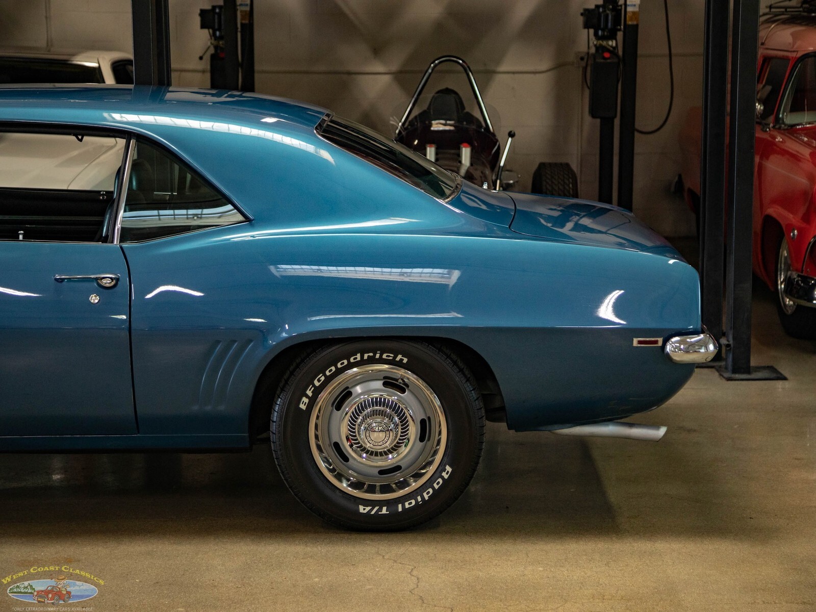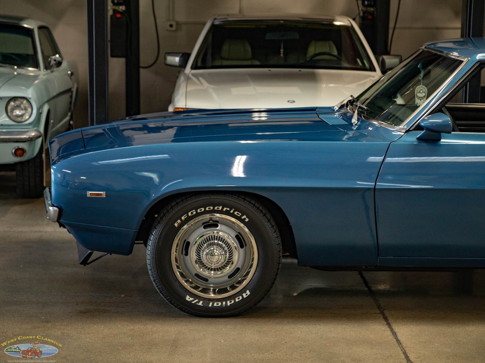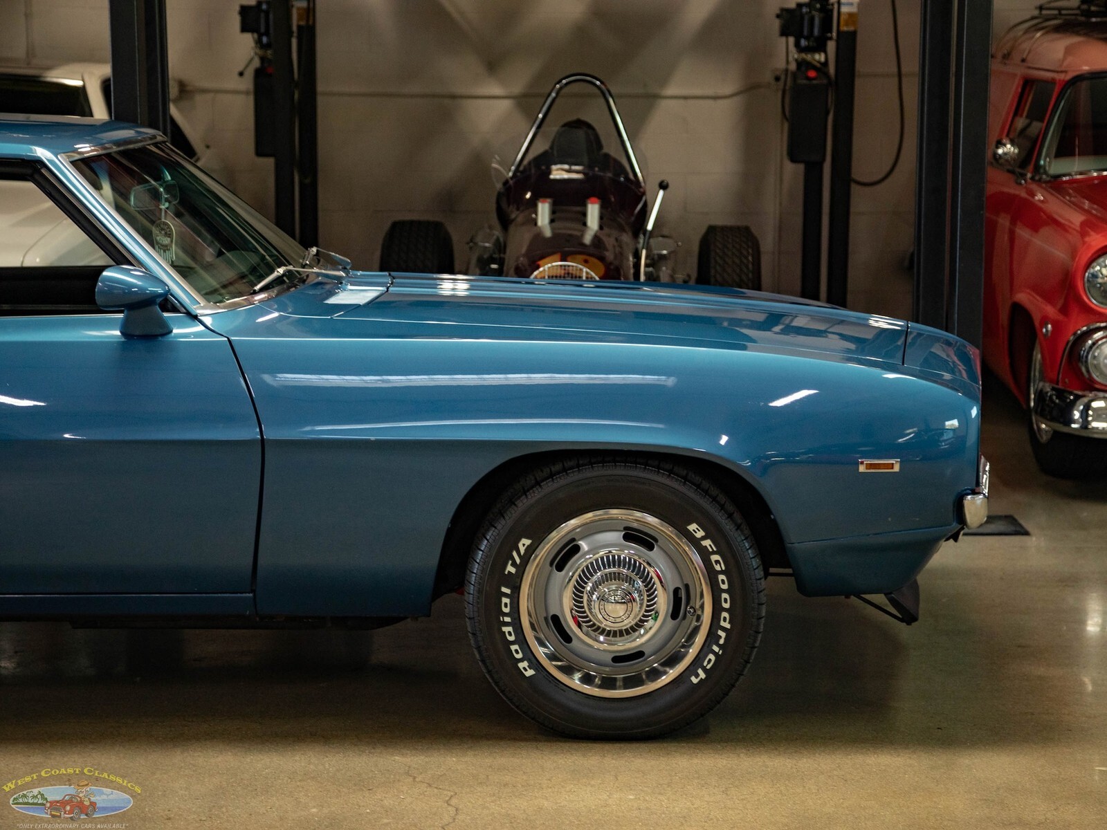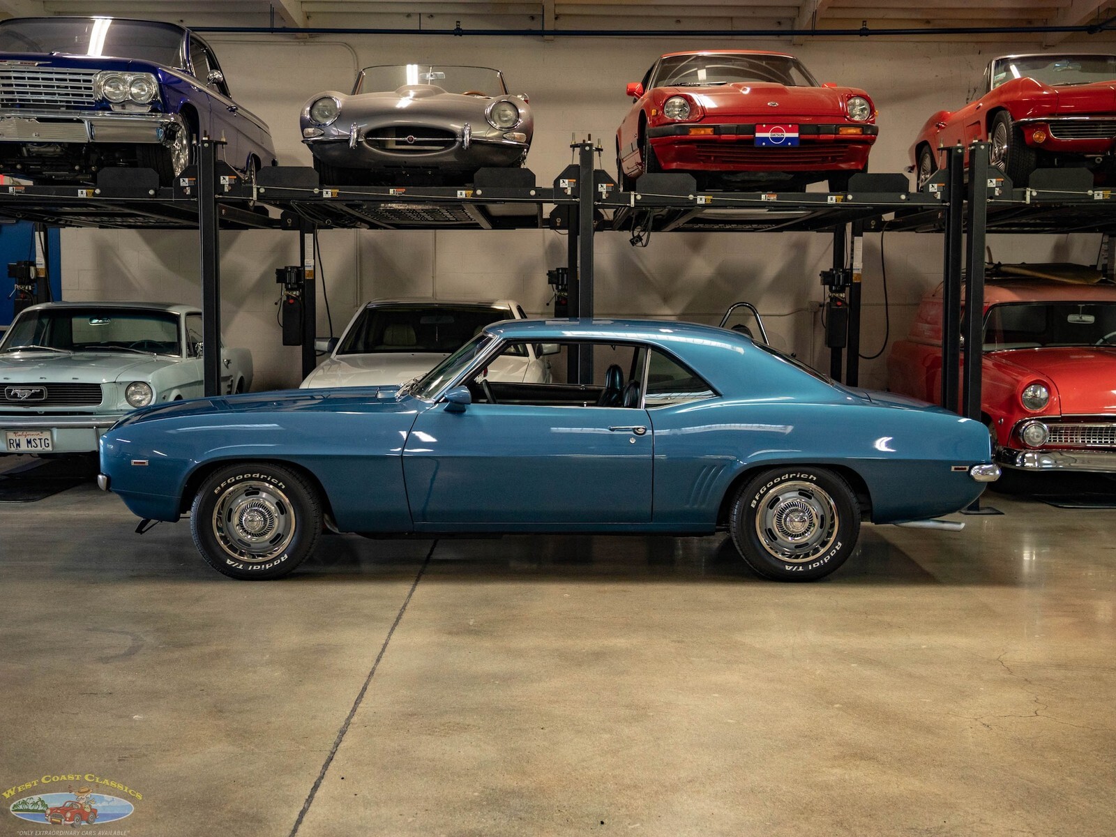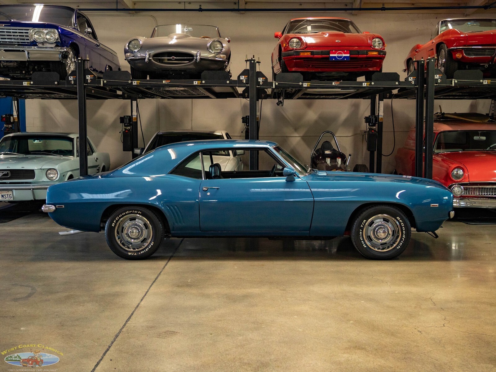 West Coast Classics are proud to present a very striking example of this 1969 Chevrolet Camaro 2 Door Coupe refinished in a brilliant shade of 'Chevy Blue' over a Black standard interior. The car boasts a 307 V8 engine matched to a 3 speed automatic transmission with power steering, power 4 wheel disc brakes, factory Air Conditioning Heat, rally wheels, tilt wheel, sweeping arm clock, premium custom stereo, remote mirror and center console with gauges!
