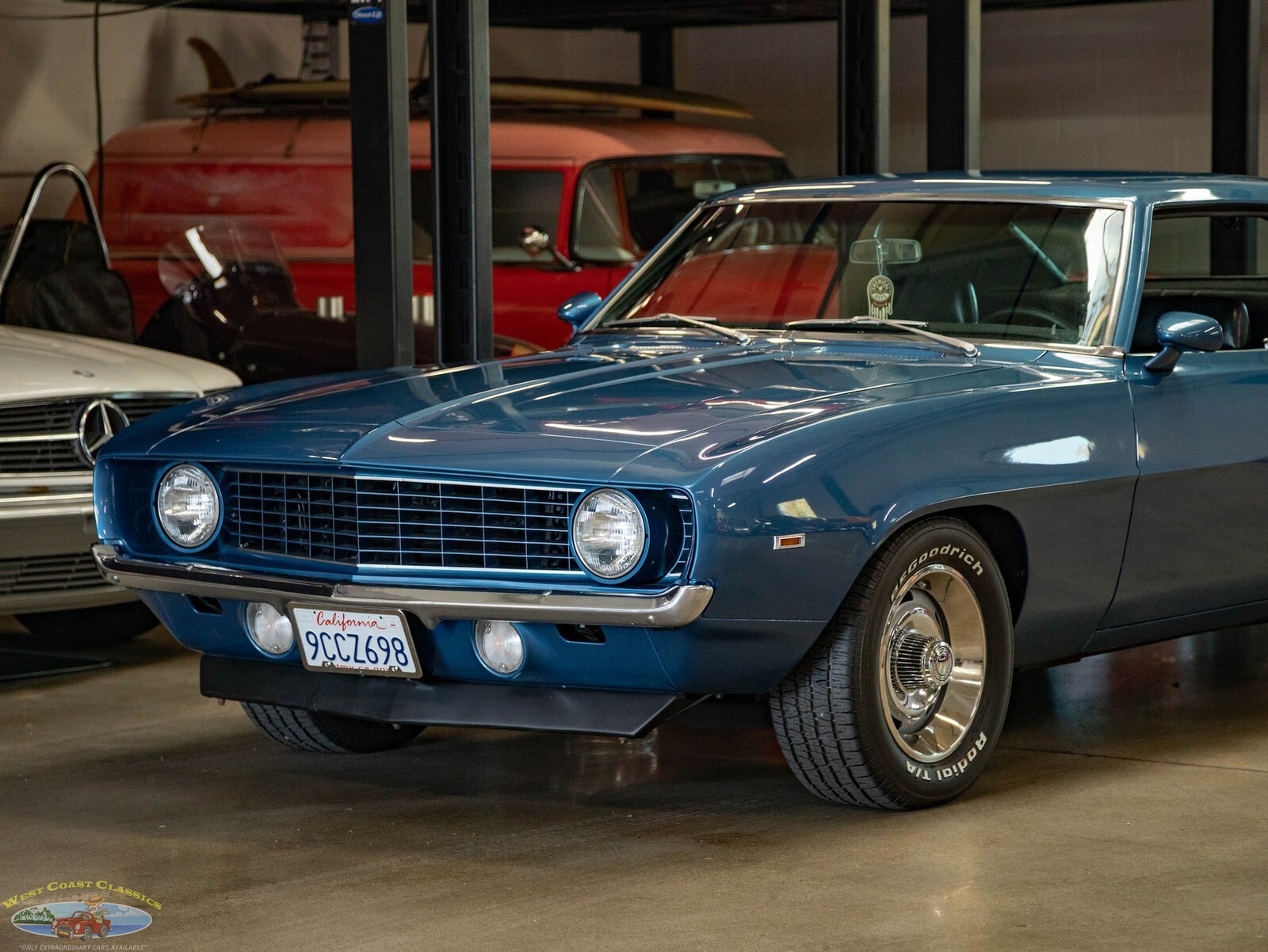 West Coast Classics are proud to present a very striking example of this 1969 Chevrolet Camaro 2 Door Coupe refinished in a brilliant shade of 'Chevy Blue' over a Black standard interior. The car boasts a 307 V8 engine matched to a 3 speed automatic transmission with power steering, power 4 wheel disc brakes, factory Air Conditioning & Heat, rally wheels, tilt wheel, sweeping arm clock, premium custom stereo, remote mirror and center console with gauges!