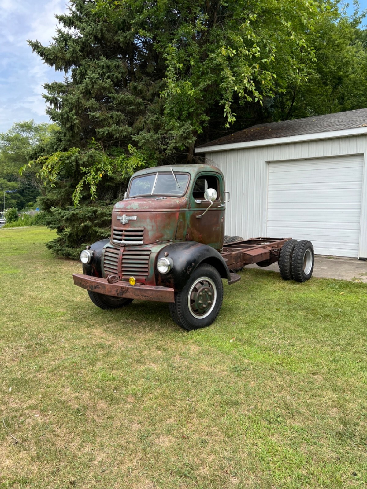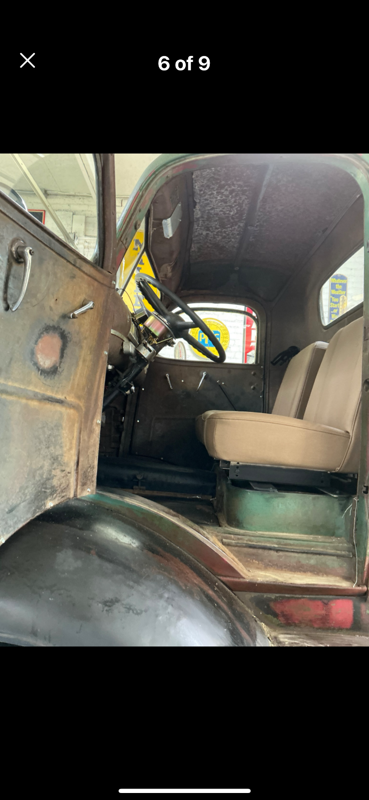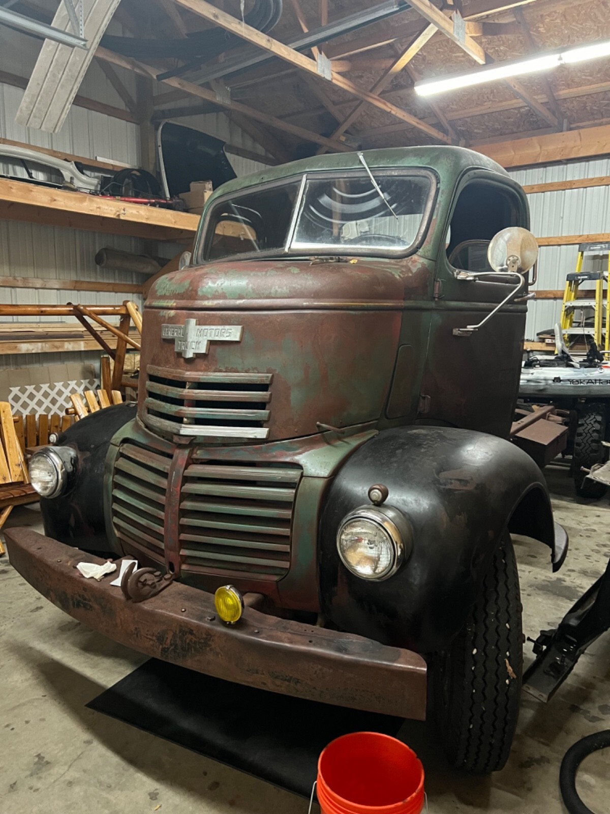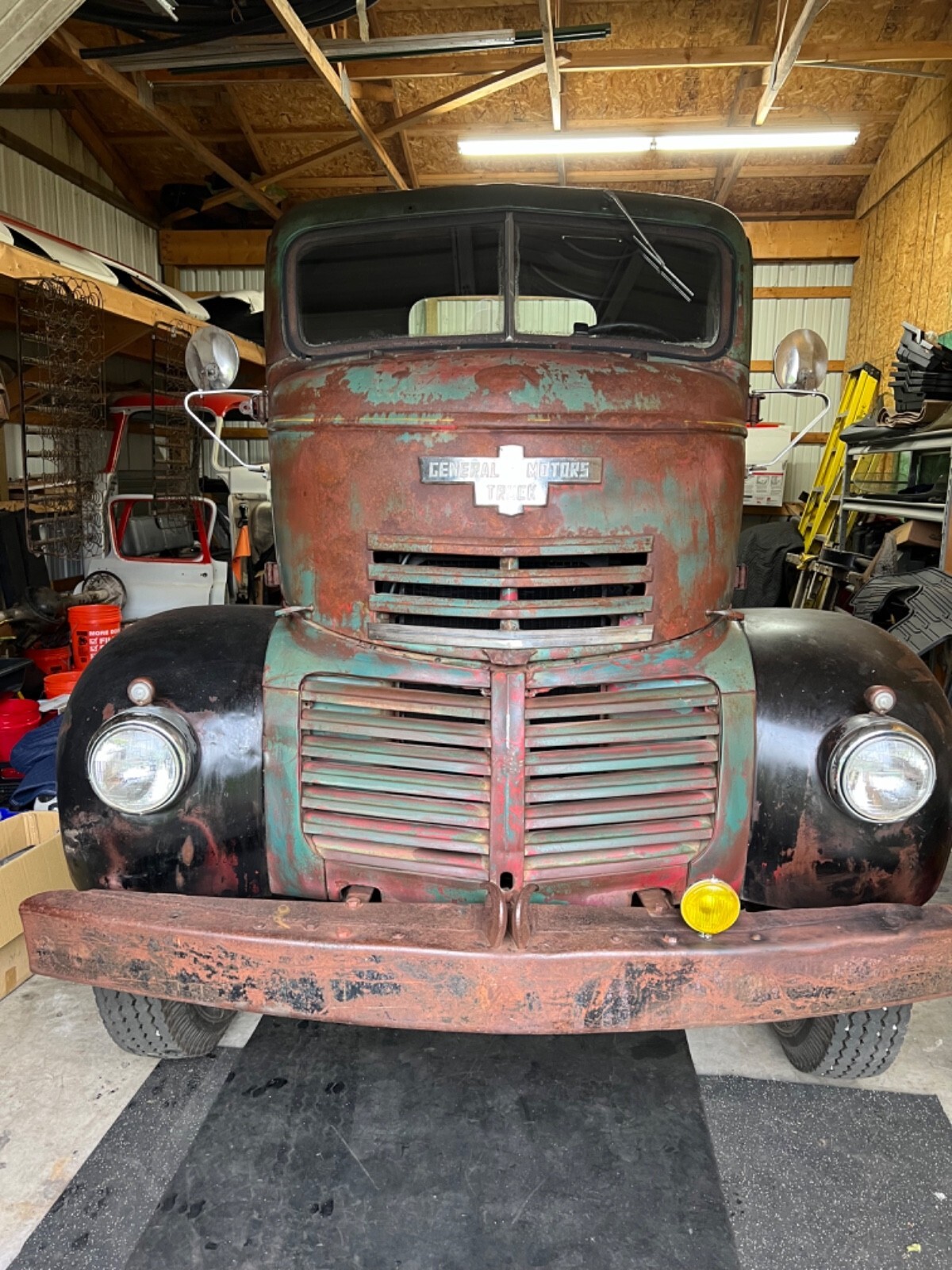 1947 Original GMC COE Farm truck from Iowa really cool truck bought 6 months ago haven’t touched it to many projects and takes to much room in the barn . Really solid truck half dollar size rust hole under inside of door . Runs drives and stops 4 speed trans 248 6 cy engine . Was told trans behind cab is anoverdrive ? New tires and seats and engine covers in cab . Someone put different gages in truck still has original gage cluster on dash and truck has been changed to 12 volt and of corse engine leaks oil and is very dirty that’s about it would be a great truck for someone to restore .my buddy’s think I’m crazy for selling it they all think it’s a bad ass truck (Truck is sold as is) if you have any questions or want more pics just let me know . Thank you and God bless . Ps truck is in Michigan . Buyer has to arrange shipping