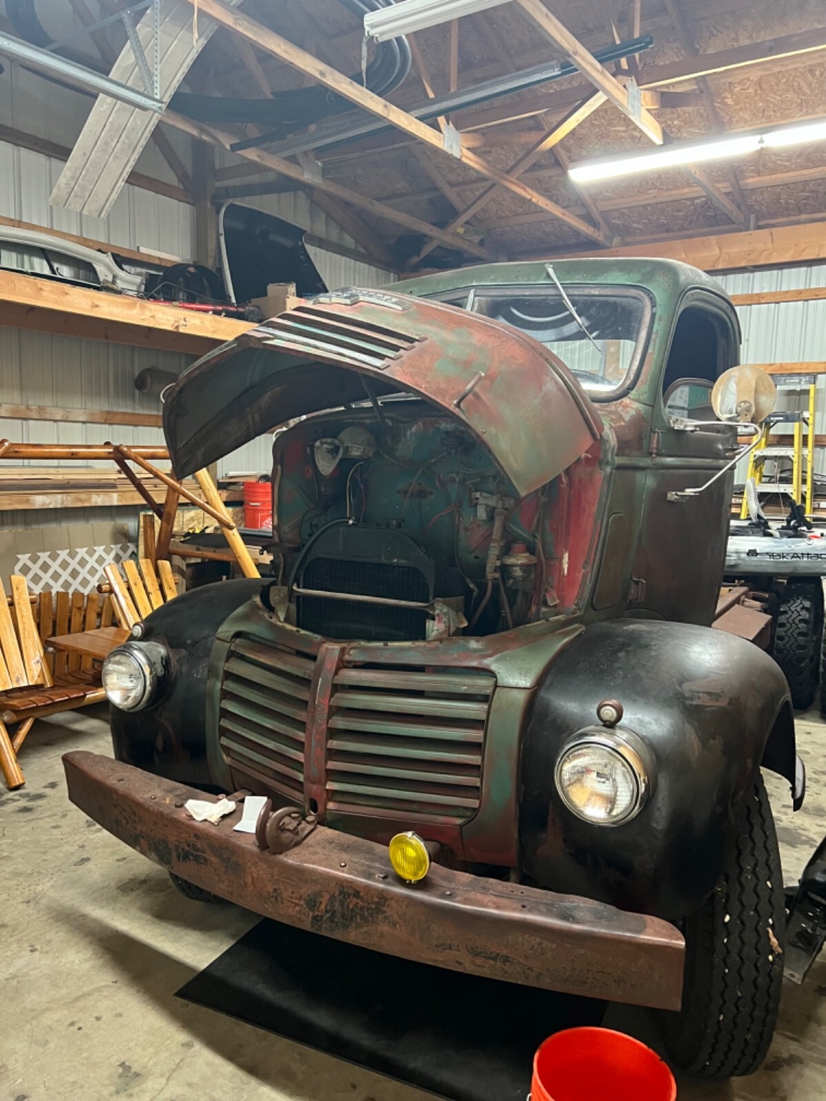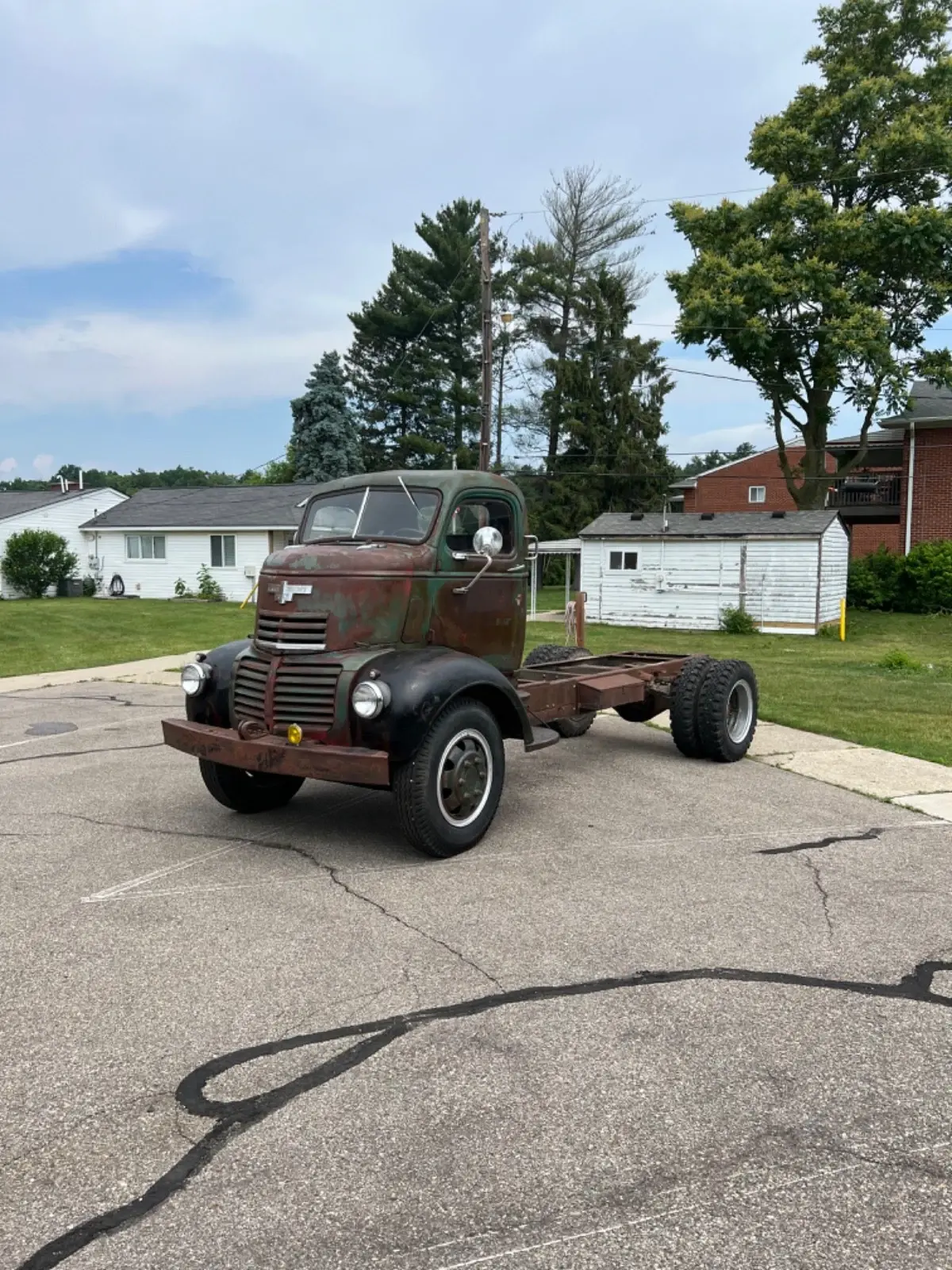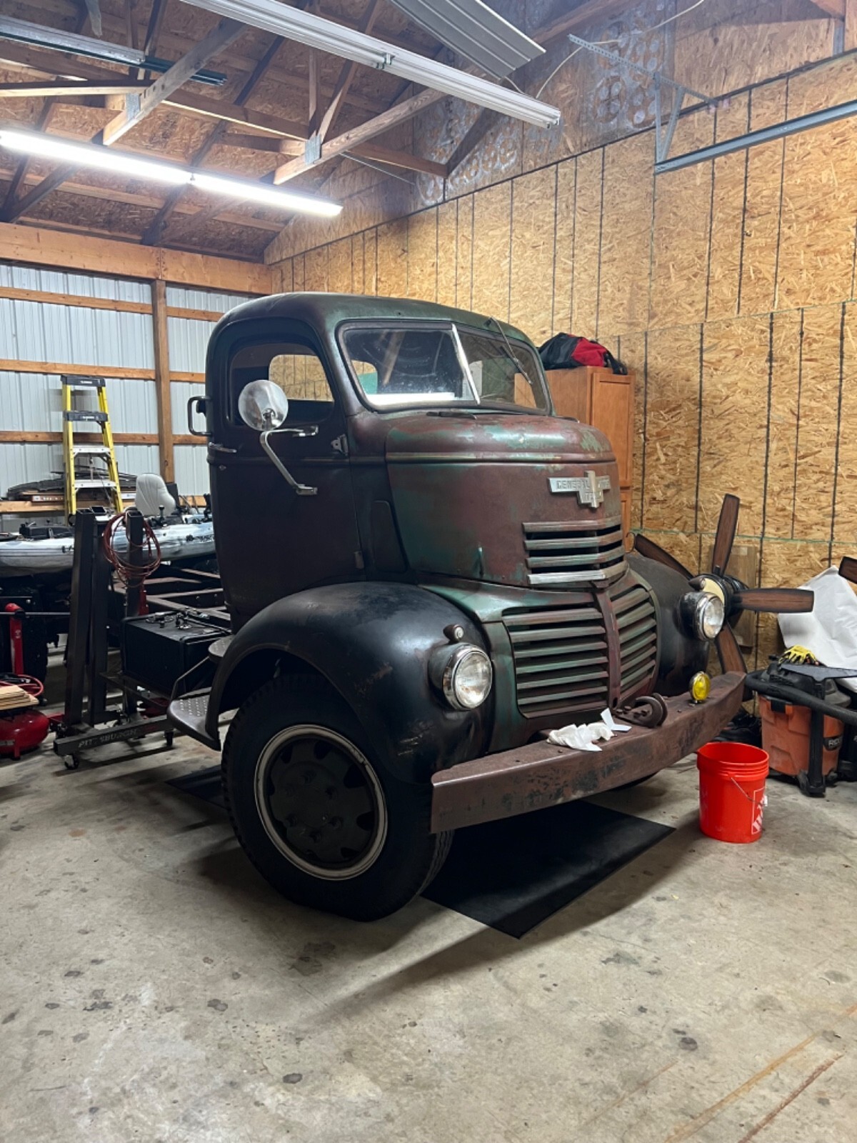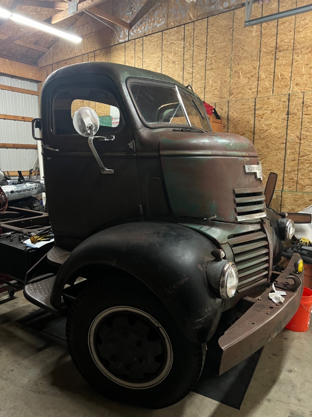 1947 Original GMC COE Farm truck from Iowa really cool truck bought 6 months ago haven’t touched it to many projects and takes to much room in the barn . Really solid truck half dollar size rust hole under inside of door . Runs drives and stops 4 speed trans 248 6 cy engine . Was told trans behind cab is anoverdrive ? New tires and seats and engine covers in cab . Someone put different gages in truck still has original gage cluster on dash and truck has been changed to 12 volt and of corse engine leaks oil and is very dirty that’s about it would be a great truck for someone to restore .my buddy’s think I’m crazy for selling it they all think it’s a bad ass truck (Truck is sold as is) if you have any questions or want more pics just let me know . Thank you and God bless . Ps truck is in Michigan . Buyer has to arrange shipping