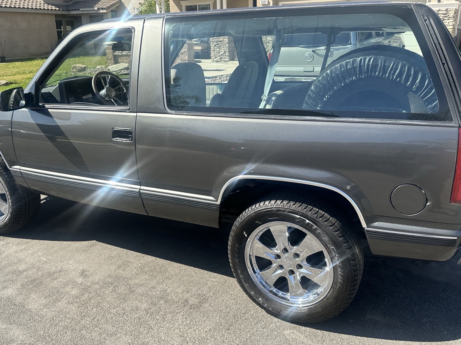 This 1992 Chevrolet Blazer is a restored vehicle with updates to the exterior. The owner has had it for 2 years. The vehicle runs great and is mainly used for weekend drives.