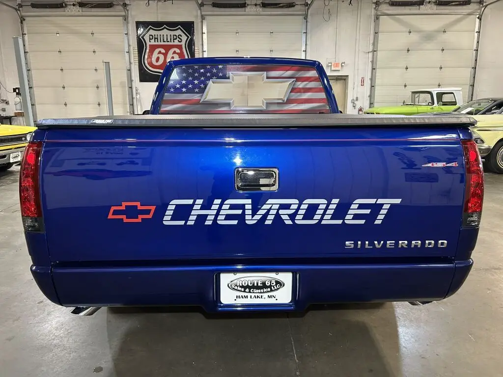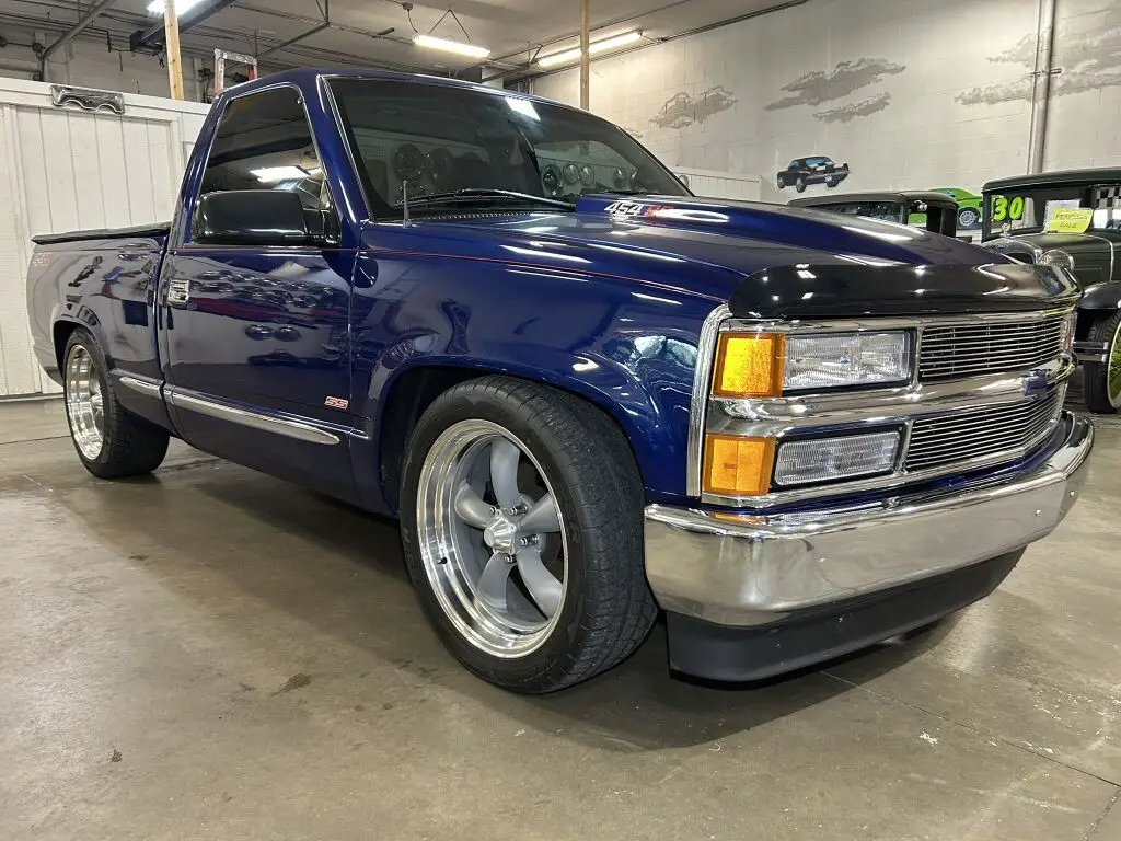This customized 1989 Chevrolet C1500 Shortbed Pickup is finished in a striking Deep Ocean Blue Metallic (2016) with a clean dark gray interior. It has a sporty| aggressive stance| rides on 20-inch American Racing wheels with great tires| and is a true head-turner wherever it goes. The paint overall has a good shine and luster with only minor flaws. The body and frame are solid| with no rust or corrosion| and the bed has been Rhino-lined for lasting protection. Originally equipped with a 5.7L V8| this truck now packs a serious punch under the hood thanks to a GM 454 CID V8 crate motor enhanced with a larger intake| a Holley carb| and modern ignition system. Power is delivered smoothly through a TH400 automatic transmission w/ a 2.73 rear end| making it an excellent cruiser that still has plenty of muscle when you want it. Inside| you'll find leather bucket seats| custom A-pillar mounted gauges| a custom instrument display| and an Alpine AM/FM/CD stereo system with USB. Options like power windows| power locks| cruise control| tilt steering| air conditioning| and heat help make this truck a joy to own. This is a well-executed restomod that combines the lines of a late-'80s Chevy with big block performance and creature comforts. It's reliable| clean| and built for driving. Call us at 763-434-6565 / 763-999-1098 or email ''route65sales@gmail.com'' to inquire about this 1989 Chevrolet C1500 Shortbed Pickup. WE ARE OPEN TO TRADES| AND FINANCING & WARRANTY ARE AVAILABLE!