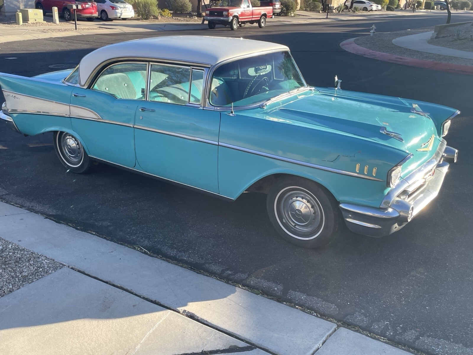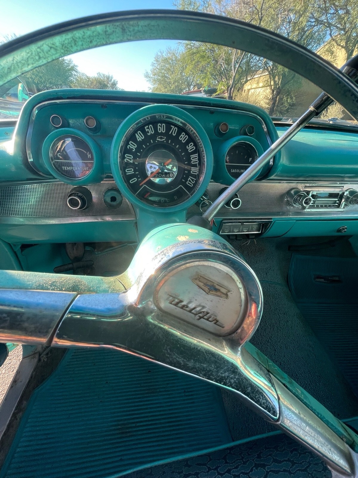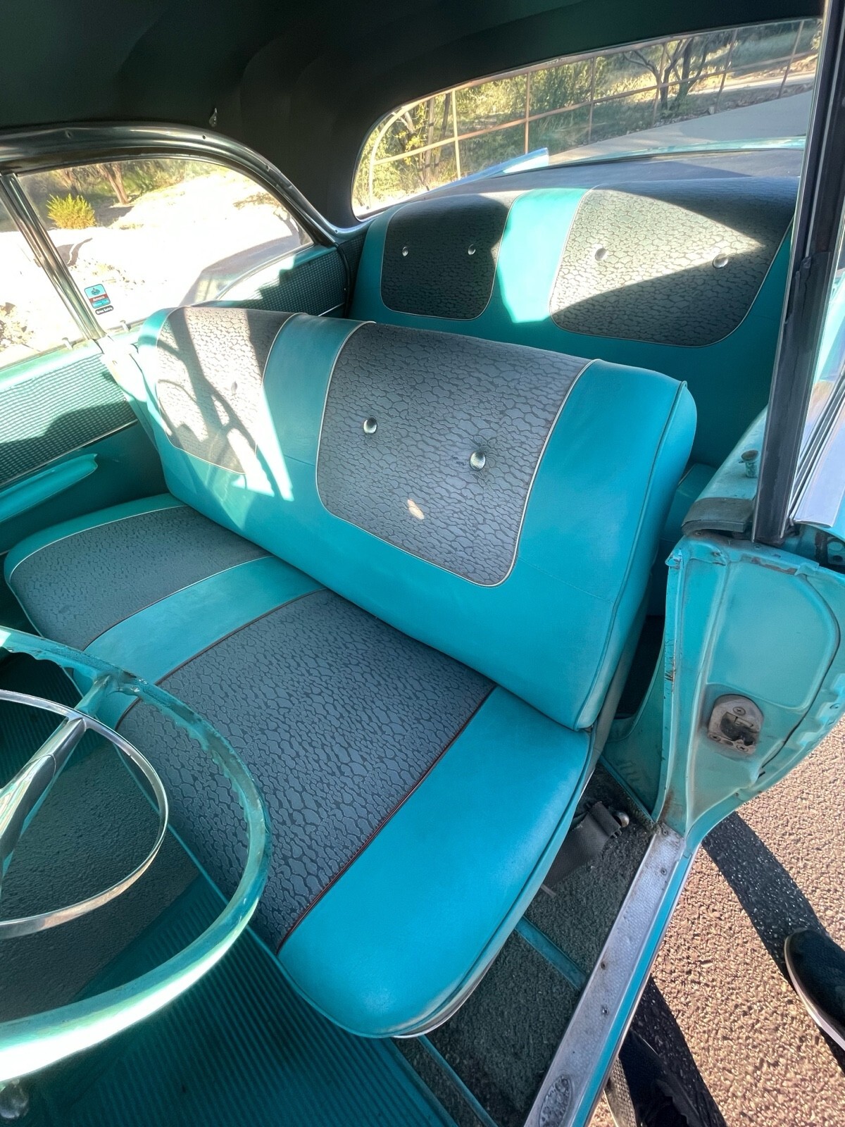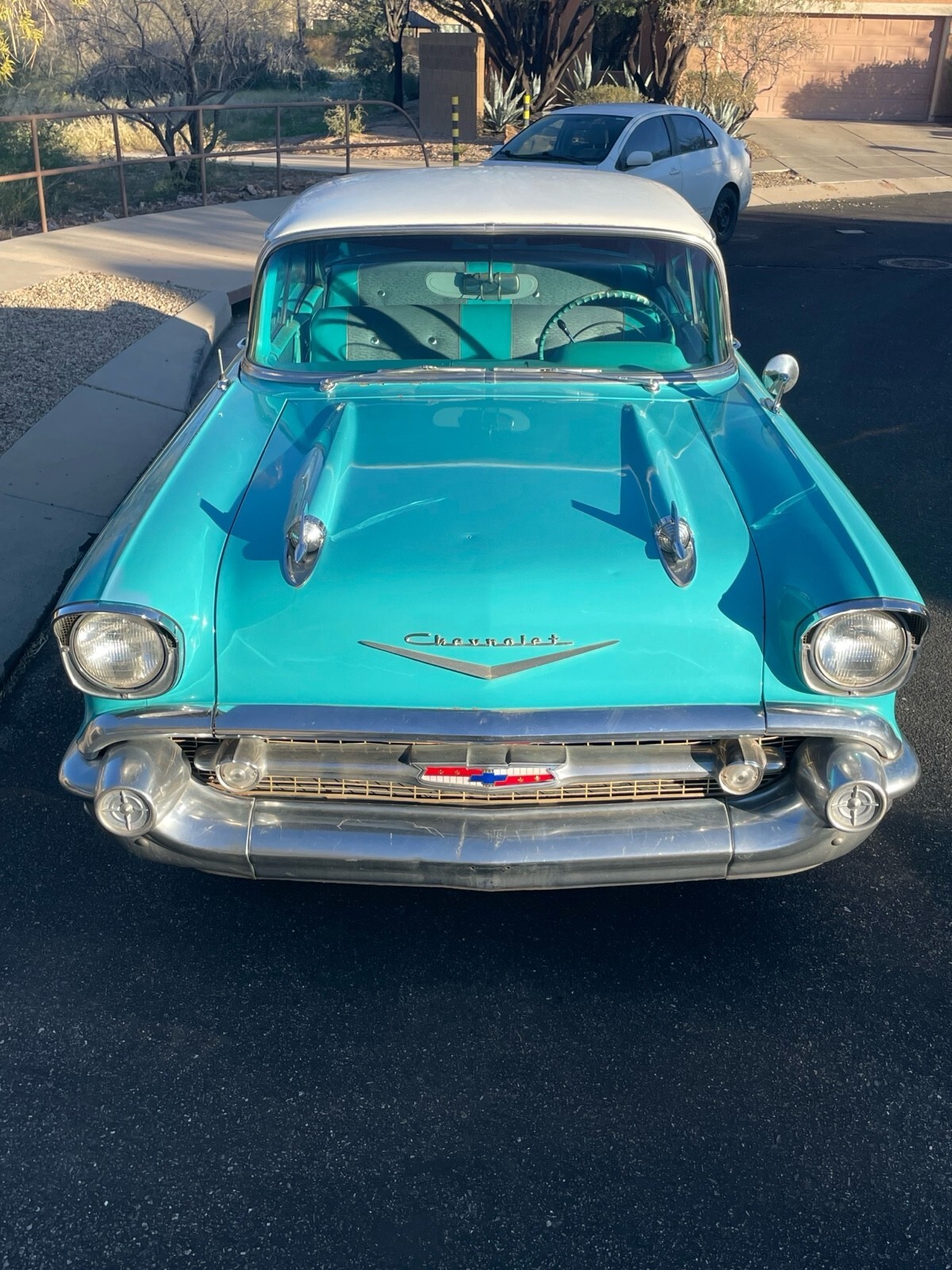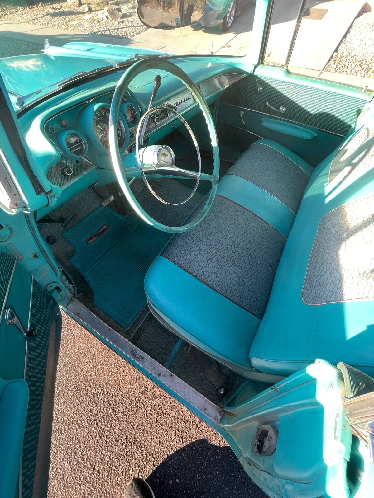 This was my uncles pride and joy 283 V8 and automatic. Original Chicago car, it was driven out to Tucson, AZ in the 70’s and has been in the desert ever since. It was driven occasionally up until 2021 and was sitting up until recently. I have replaced the battery, gas tank, sending unit, filter and fuel pump to get it running. Runs and drives but needs someone more familiar with these older cars to adjust/tune properly. Definitely needs a solenoid replaced on the starter because it won’t catch every time. There is some early rust from when it was in Chicago but seems minimal as pictured. Interior is not too bad, but the carpet is shot. Window seals have deteriorated in the desert sun. Please ask questions, I will do my best to answer them. Your more then welcome to come check it out as well. Located in Tucson,AZ.