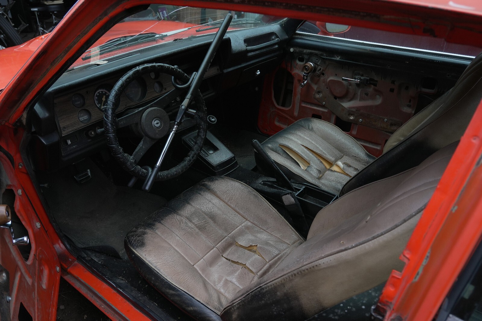 Leaky oil panCrack on the windshieldTurn signals/windshield wipers do not workFuel gauge does not workNo ACNo power steeringMissing door interior/roof panels