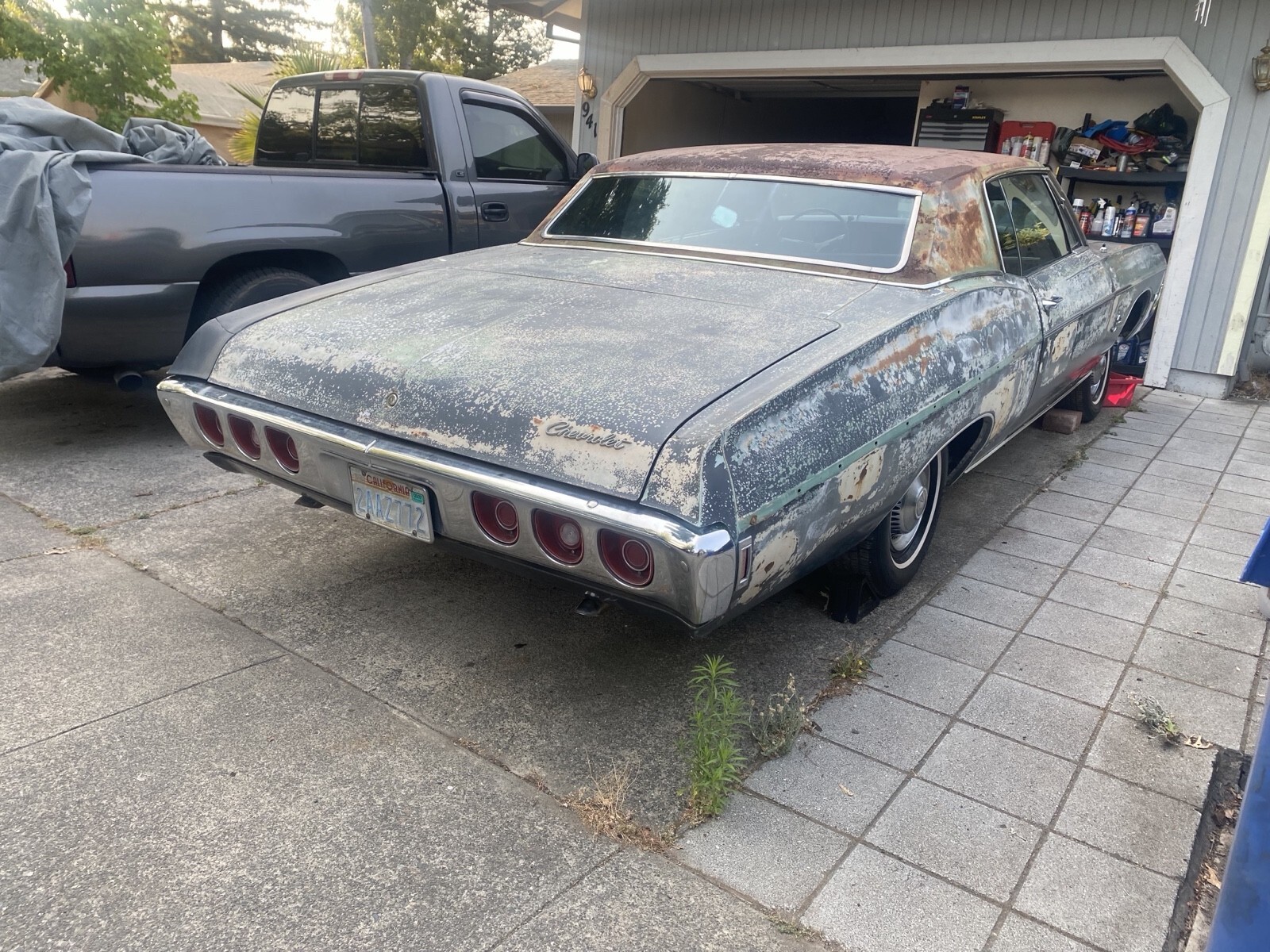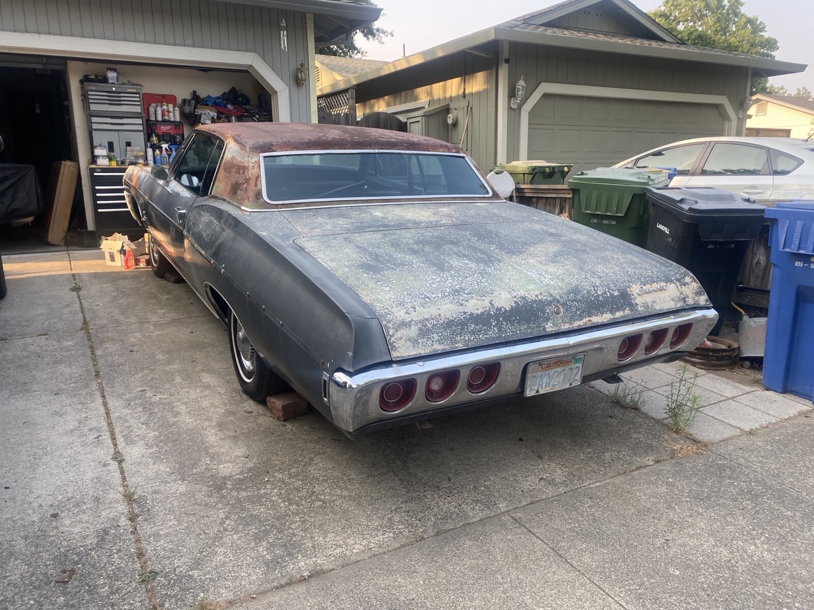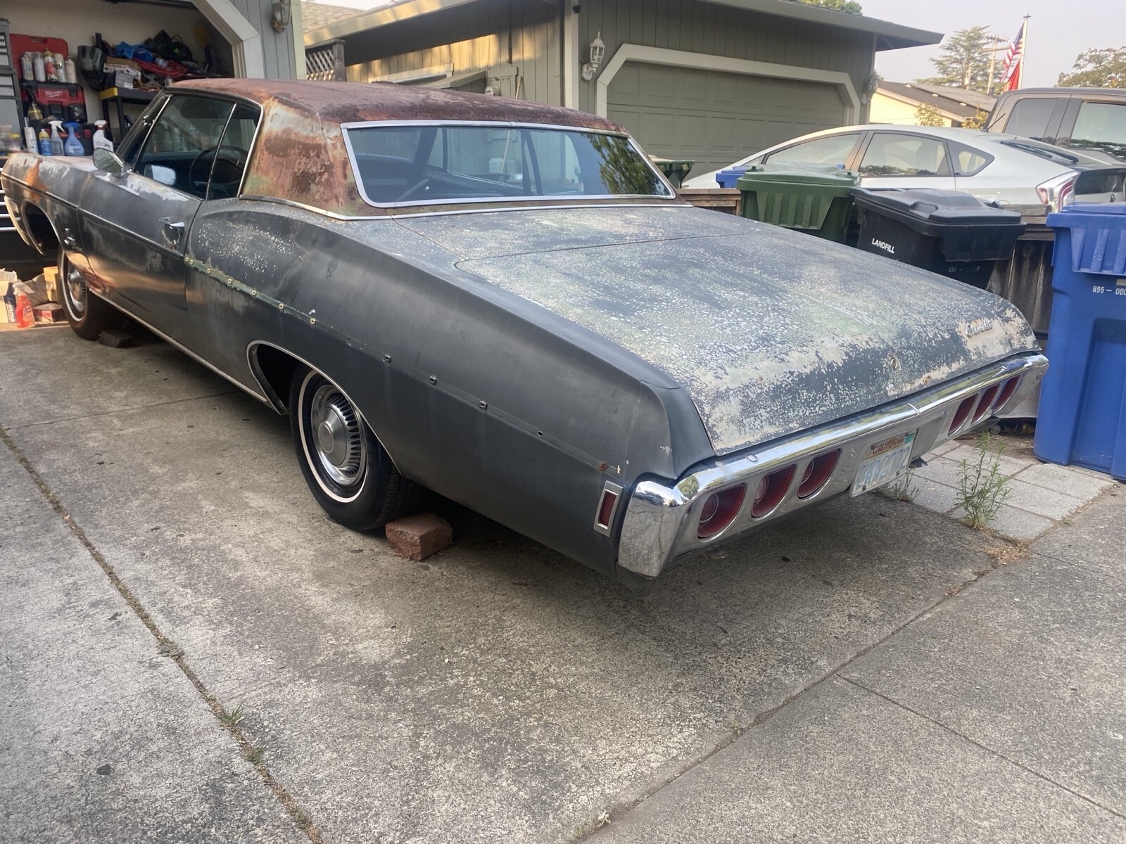 1968 impala custom. Clean California title under my name, non op. Zero back fees. Car spent all its life in California. Has a few small rust spots on floor but solid project overall. Has a 283, automatic trans. Was in the process of getting it running but need space and funds for other vehicle currently being restored. Has new water pump, fuel pump, spark plugs, cap, rotor, new duel exhaust. Needs a few more hours of work to get it going. 3rd owner. Feel free to reach out if you have any questions. Local pick up. Will work with any shipper if long distance.