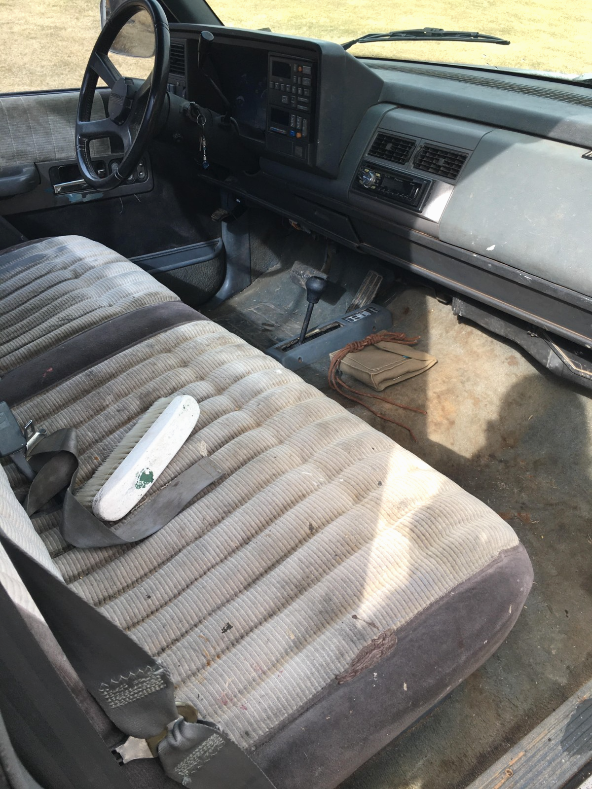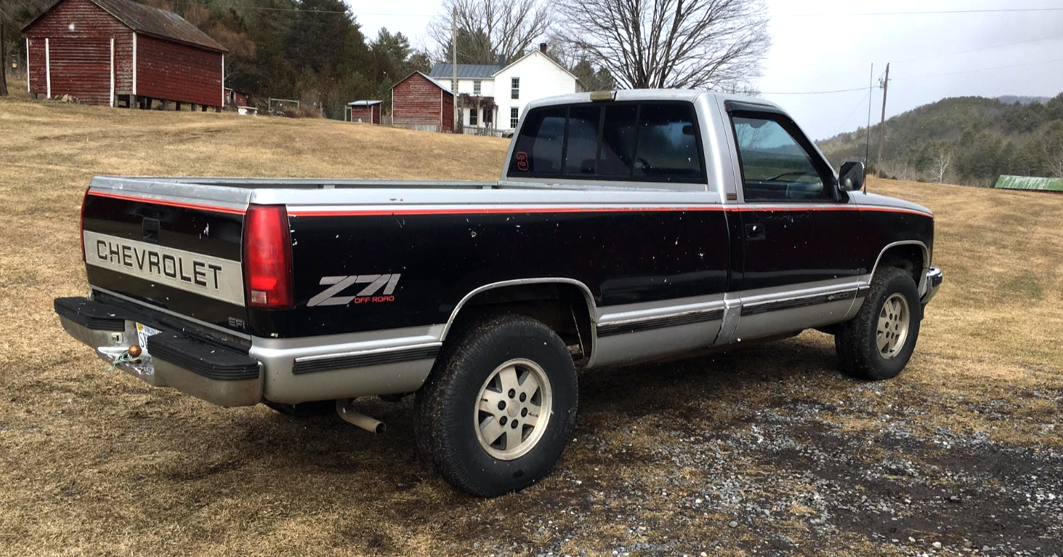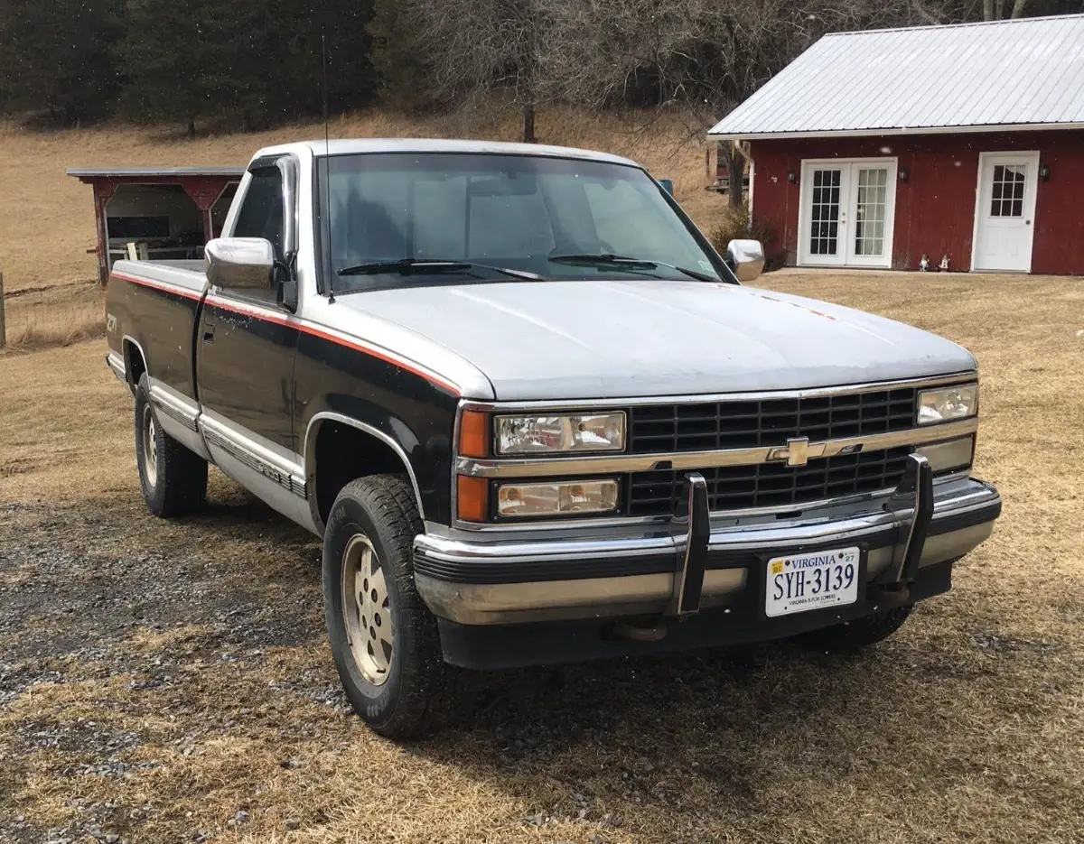 1990 Chevy K1500 Silverado - Regular Cab 4WD 350 V8 5.7L OBSnewer less than 100k miles V8 strong 350 5.7L motor runs like a top and uses or leaks no oil between services. 4X4 works as it should. brakes excellent tires like new. fresh $500+ tuneup all ignition parts new including distributor battery and alternator (receipts). frame is solid as a rock no rust or rot and the truck rides like big car ride. body is solid no dents or damage original factory two tone Silverado finish clear coat has wear. the interior is cloth bench seat in great condition complete without any rips or tears and probably could use a good detailing if you so wish. A/C and Pioneer stereo. this is a great chevy OBS truck opportunity. truck is not perfect but in very good condition.
