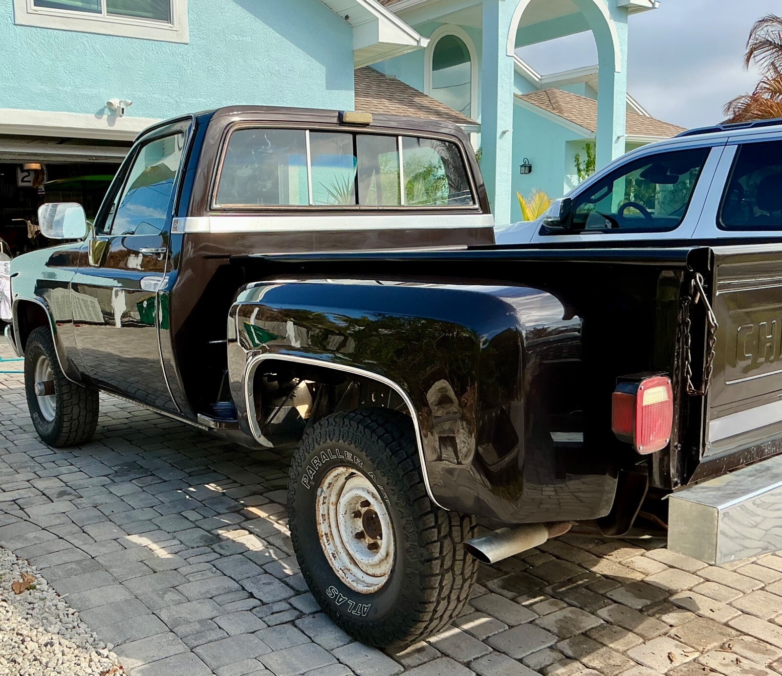 Very rare truck, lots of options from the factory. Was just painted in a driver quality paint job. Originally a Texas truck no rus, the orange color on the under side pictures is orange dirt..Air conditioning, power door locks, power windows, tilt wheel, rear sliding window, 4x4, cruse control, dual fuel tanks, runs goo, shifts good. If you want to send an offer please message m, Truck is sold as is and I advise to inspect vehicle before bidding.