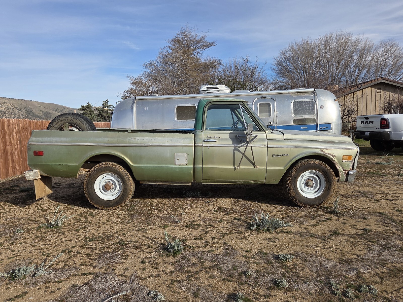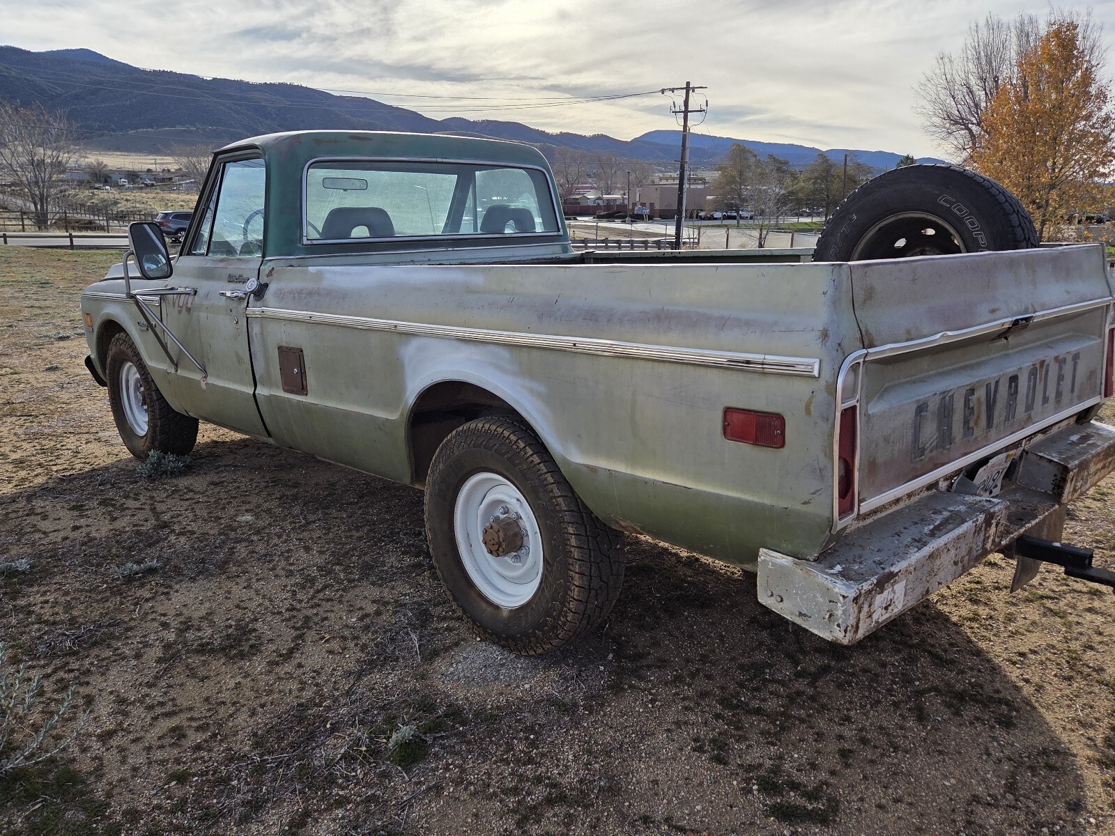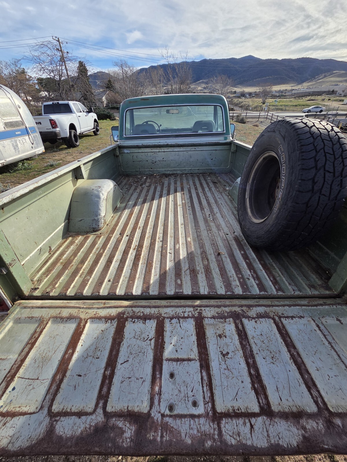 This old truck. 2wd . Plenty of bumps and bruises. Refer to pics for best description. The motor and transmission are solid. Squeaky belt. The carb dosnt appreciate higher speeds on the freeway and backs off sometimes need to feather the throttle to get the carb to agree with the gas pedal. Comes with a new holly carb. Its been collecting dust on the seat for a year. The brakes might need a new booster or bled sometimes the get hard and you got to pump them a few times. Appears to be factory ac equipped. Missing the compressor and condenser.