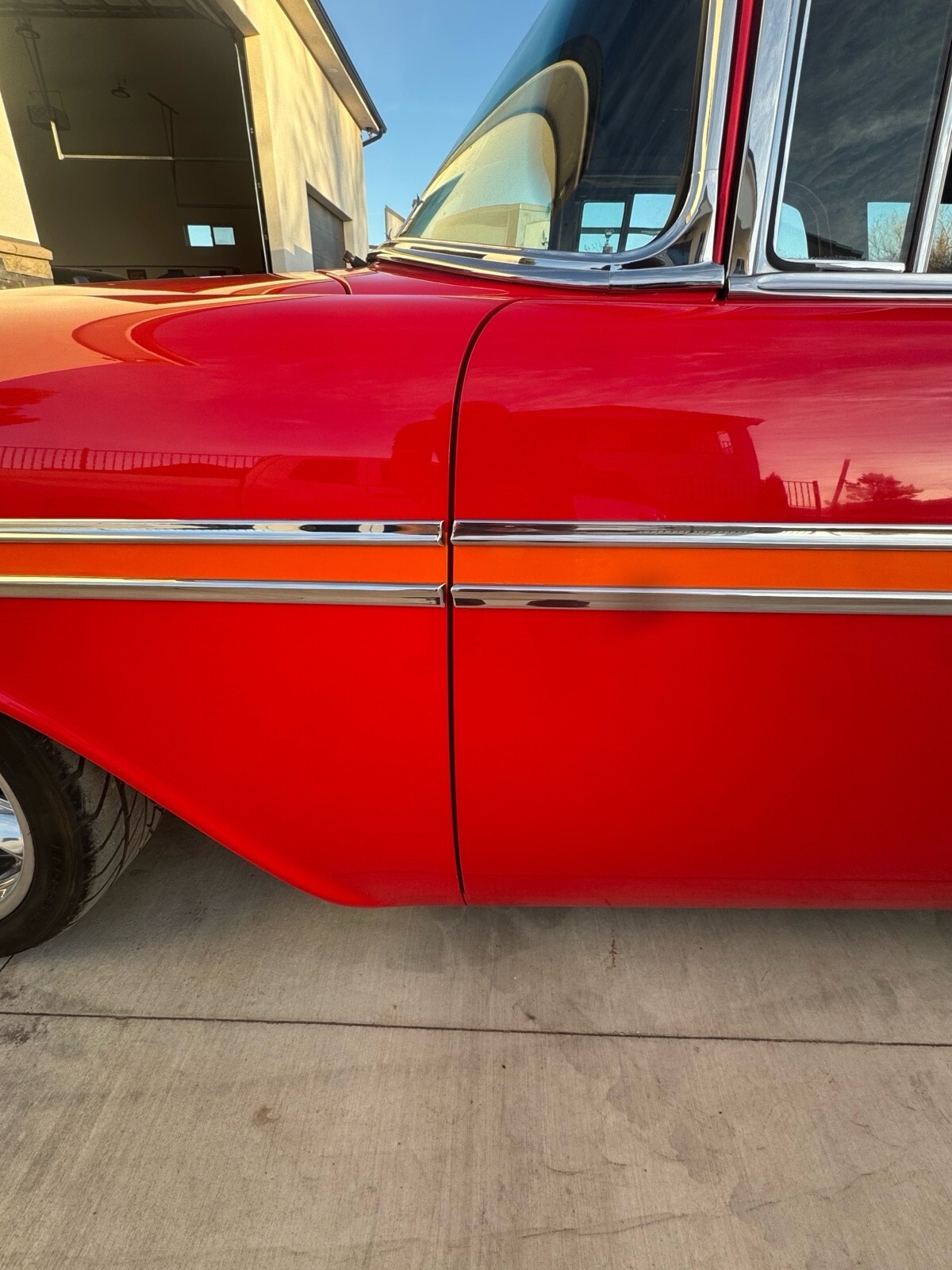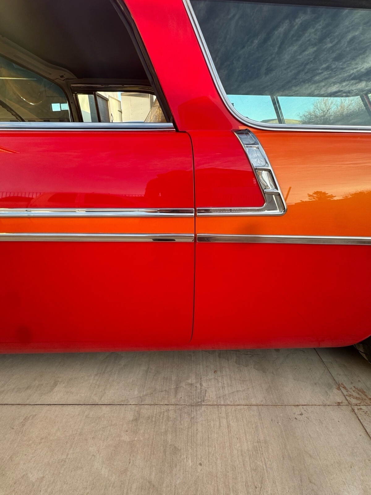 This 1956 Chevrolet Nomad has undergone an extensive 8-year, no-expense-spared, nut-and-bolt restoration, built to an extremely high show standard. Every square inch of the car has been meticulously smoothed, finished, and detailed. The paint and bodywork are true #10 show quality, with the car painted inside, outside, and underneath—the underside is as nice as the top. It does have 2-3 small chips I will try and get touched up.