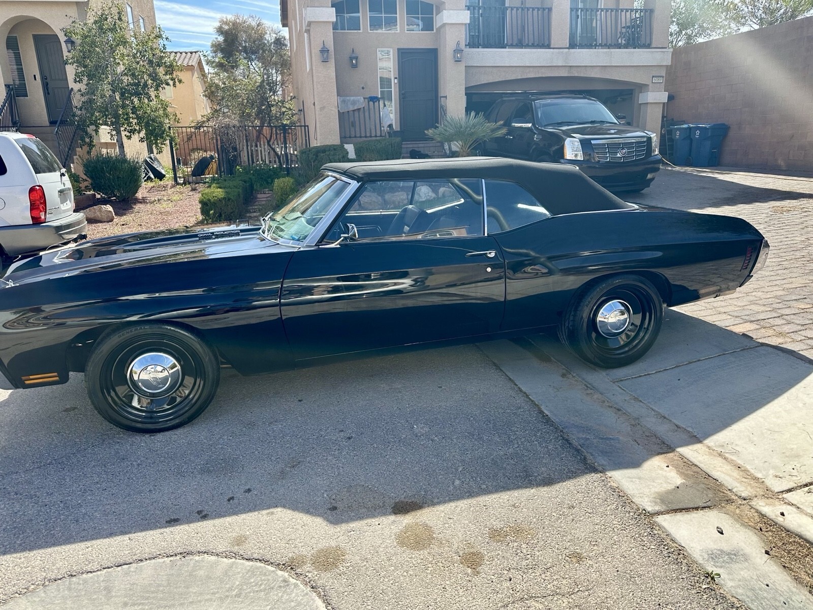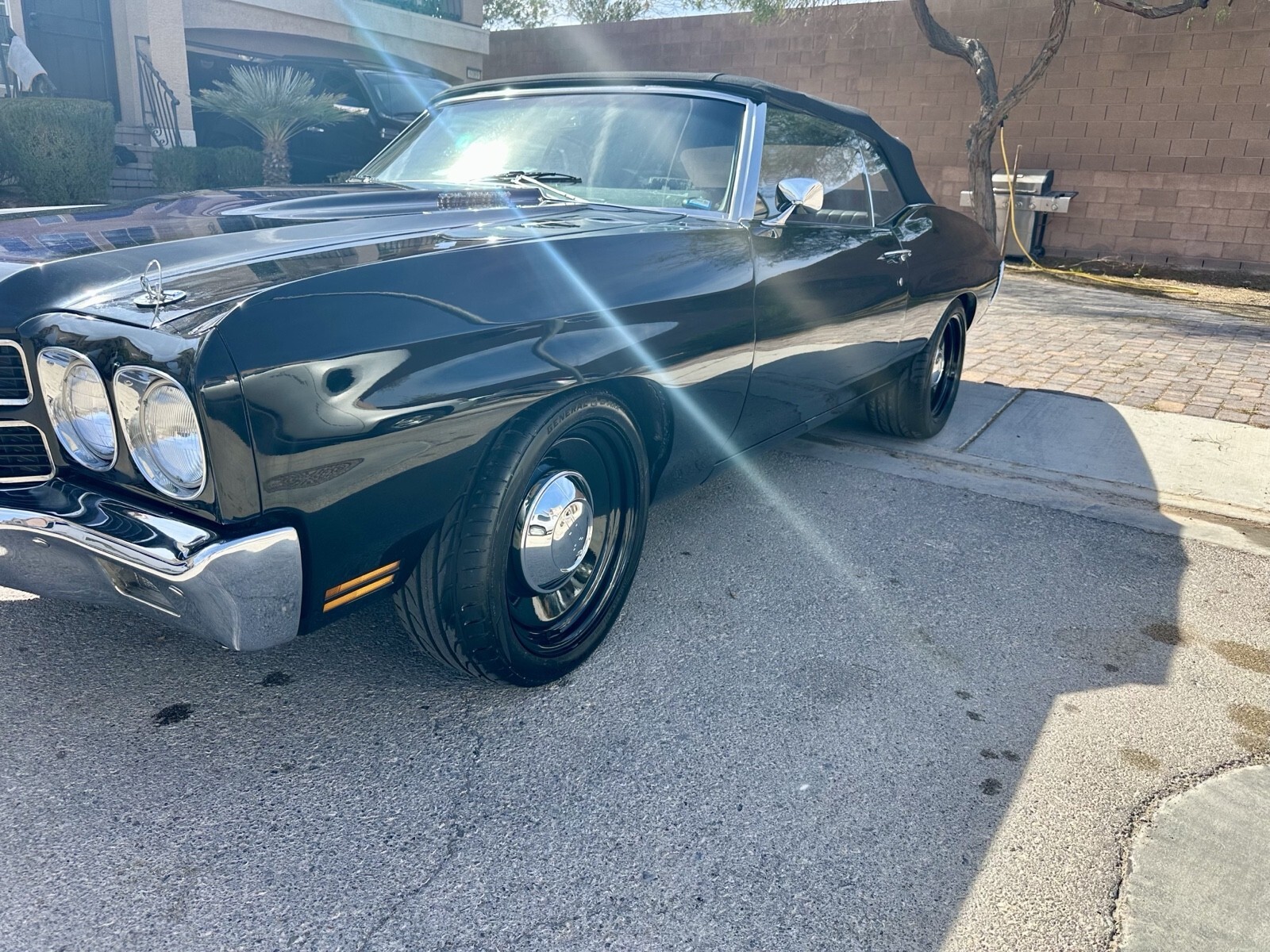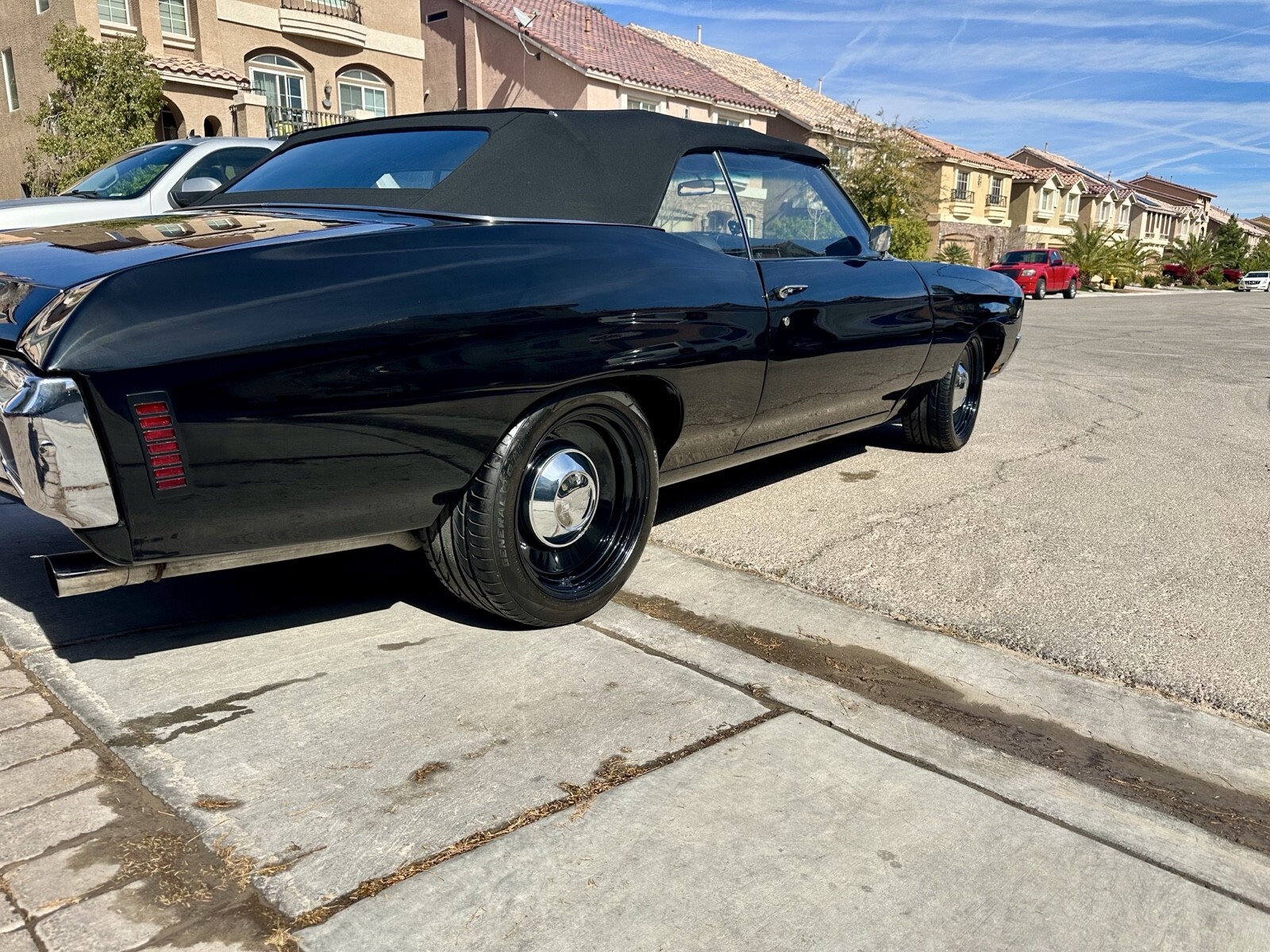 Up for sale is my 1970 Chevelle convertible. Car has been LS swapped with a 4L60 automatic transmission behind it. Has a 10bolt rear end with 323 gears along with upgraded wilwood brakes and rotors. Car has new tublar control arms along with factory style air shocks. The interior is all new along with new power top and tmi suede front buckets. Car has two sets of wheels for whichever looks you would like to go with. Currently has the brand new US Wheels 18x8 and 18x10 black steelies on it. But also still have the American Racing wheels that are in the other pictures. Car runs and drives great. Paint is chevy black with very dark blue Super Sport “ghost” stripes. Hard to see until you get up close to it. Paint is nice driver quality, a couple small nicks from the car being driven. Chrome on the car is the same, driver quality with a couple sun spots. If you are wanting a really nice 70 ragtop that you can get in and cruise and not being a 150k into this is a great car for it. Any questions feel free to message me