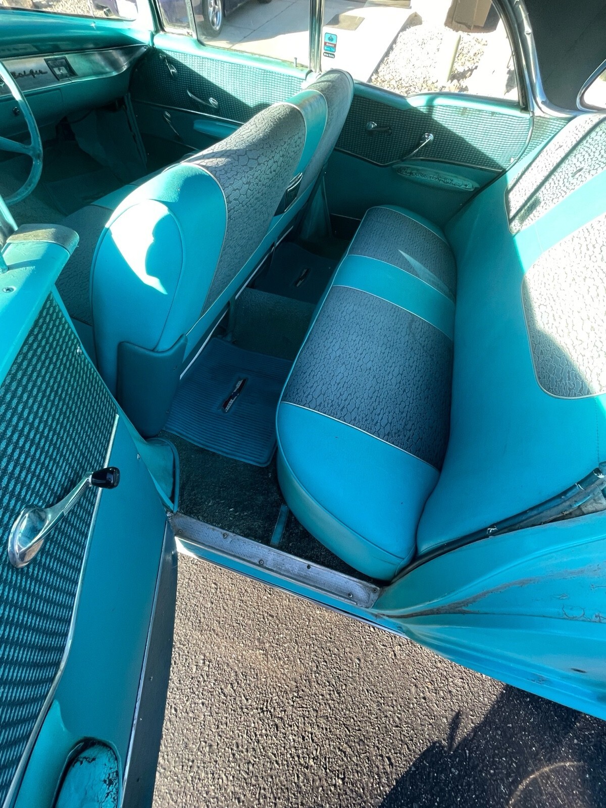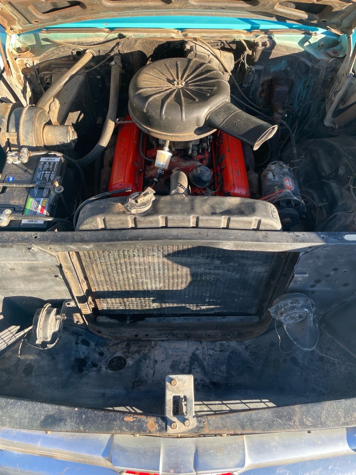 This was my uncles pride and joy 283 V8 and automatic. Original Chicago car, it was driven out to Tucson, AZ in the 70’s and has been in the desert ever since. It was driven occasionally up until 2021 and was sitting up until recently. I have replaced the battery, gas tank, sending unit, filter and fuel pump to get it running. Runs and drives but needs someone more familiar with these older cars to adjust/tune properly. Definitely needs a solenoid replaced on the starter because it won’t catch every time. There is some early rust from when it was in Chicago but seems minimal as pictured. Interior is not too bad, but the carpet is shot. Window seals have deteriorated in the desert sun. Please ask questions, I will do my best to answer them. Your more then welcome to come check it out as well. Located in Tucson,AZ.