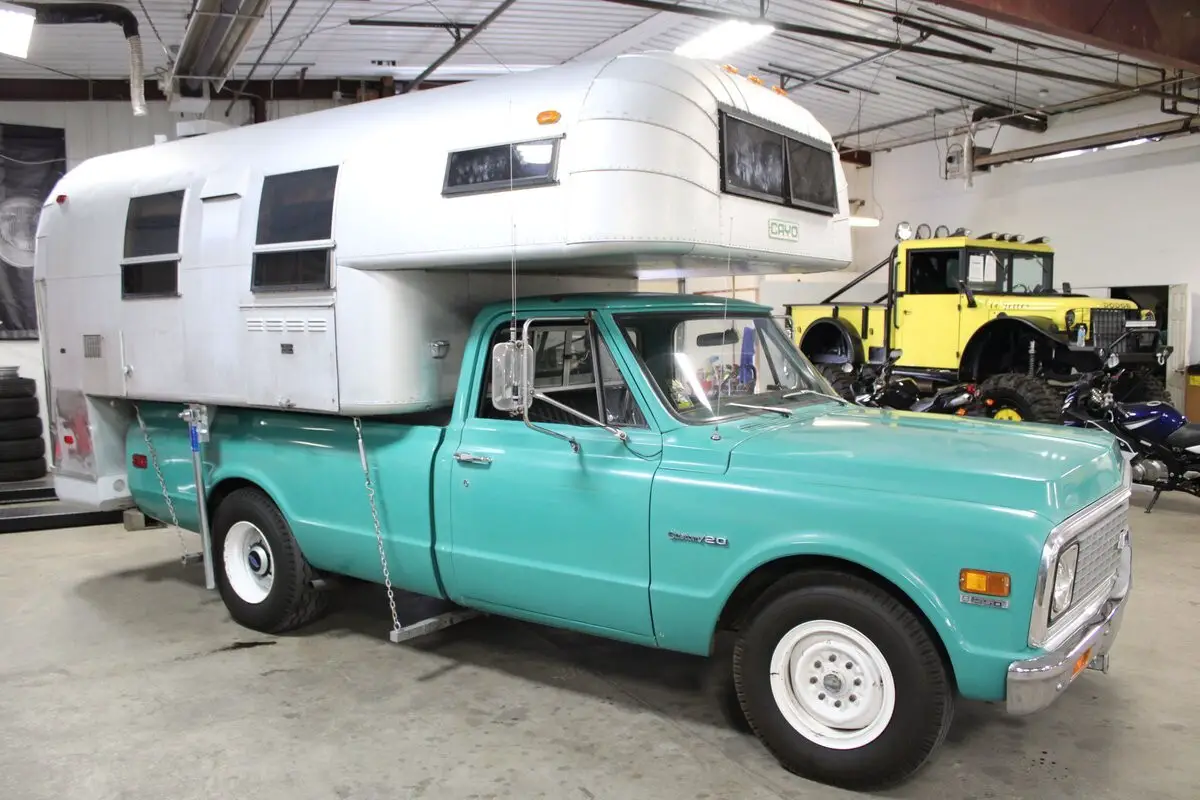 For More information on the Cayo unit, go to tincantourists.com/wiki/cayo. What we have here is a really nice set-up with what could be same years considering the Cayo C11 was built between 1970 and 1974. I would call this dynamic duo a running/driving project. The truck starts right up, idles nice, shifts nice and goes down the road exactly how you see it but will need some things to make it a suitable long trip unit. The truck has an exhaust leak, it is weaping oil out of the valve cover gaskets and smokes a little smoke upon start up. Brakes feel quite good and there is new rubber including a very heavy-duty rear tire. The camper is in very good unmolested condition with the exception of some wiring that the seller was in the middle of. I have not tested any of the inner workings of the camper but everything appears to be there. He also started polishing the exterior but only made it on one corner...Sure would look cool polished up. The truck has had a re-paint but appears to be all-original otherwise. This truck has some surface rust as you can expect but is not crusty or full of rot and is very solid throughout. This would be one heck of a project to take on and enjoy while doing it. We welcome any questions or inspections here in our Traverse location. Come check it out!