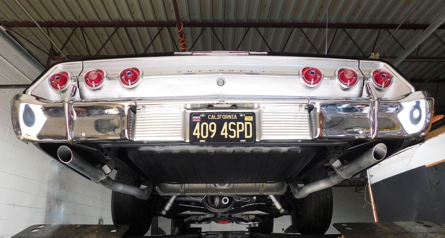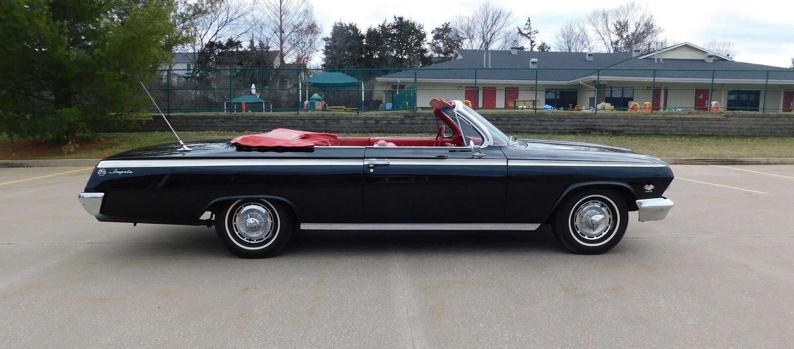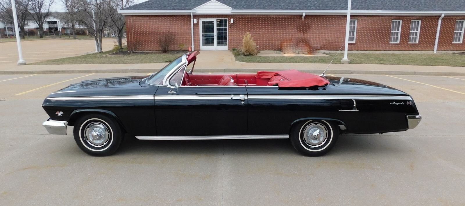 1962 Impala Super Sport #'S Matching 409/409 mated to a four speed manual transmission. This Impala was the lucky recipient of a frame off restoration and finished in the correct Tuxedo Black paint code (900) with red interior. There is power brake, power steerin, power to, Factory Tachomete, bucket seat, center console and original spinner hub caps! This car runs strong and goes straight down the road with authority and demands attention where ever it goes! The paint is nice with a deep shine and a mirror like reflection. The body is straight and the fit & finish is nice. Call 314-346-6039 with any questions or to purchase