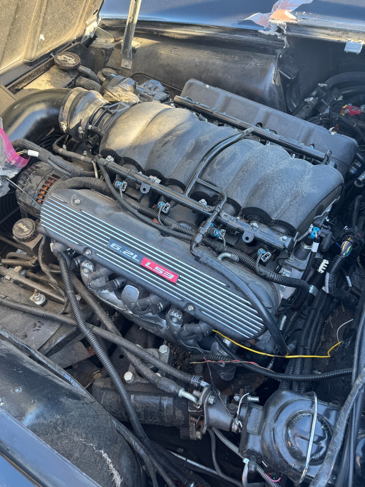 - LS3 6.2L V8 — engine present, intact, and confirmed to start/run on freshly flashed ECU