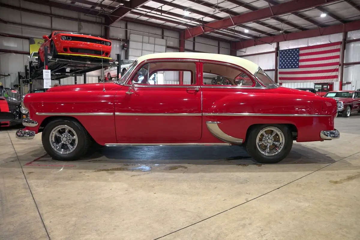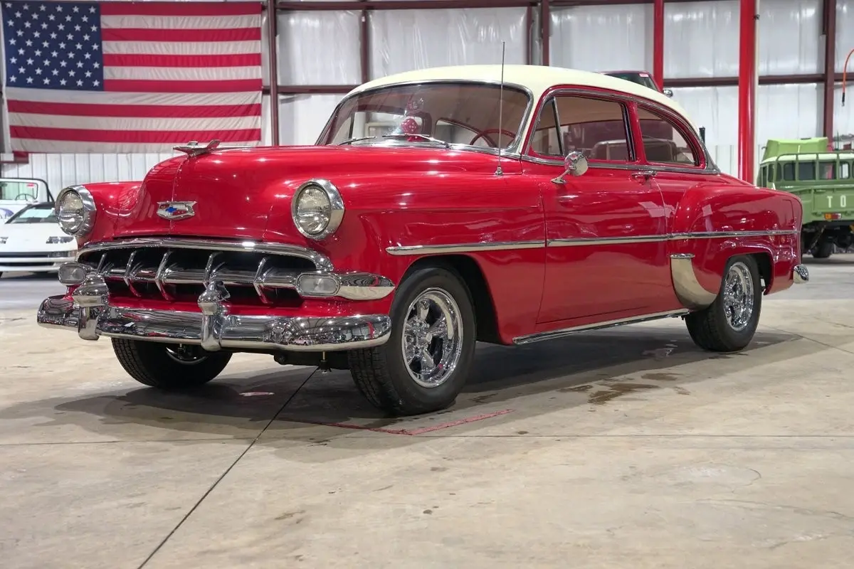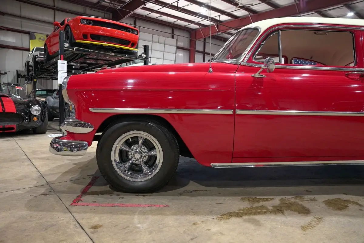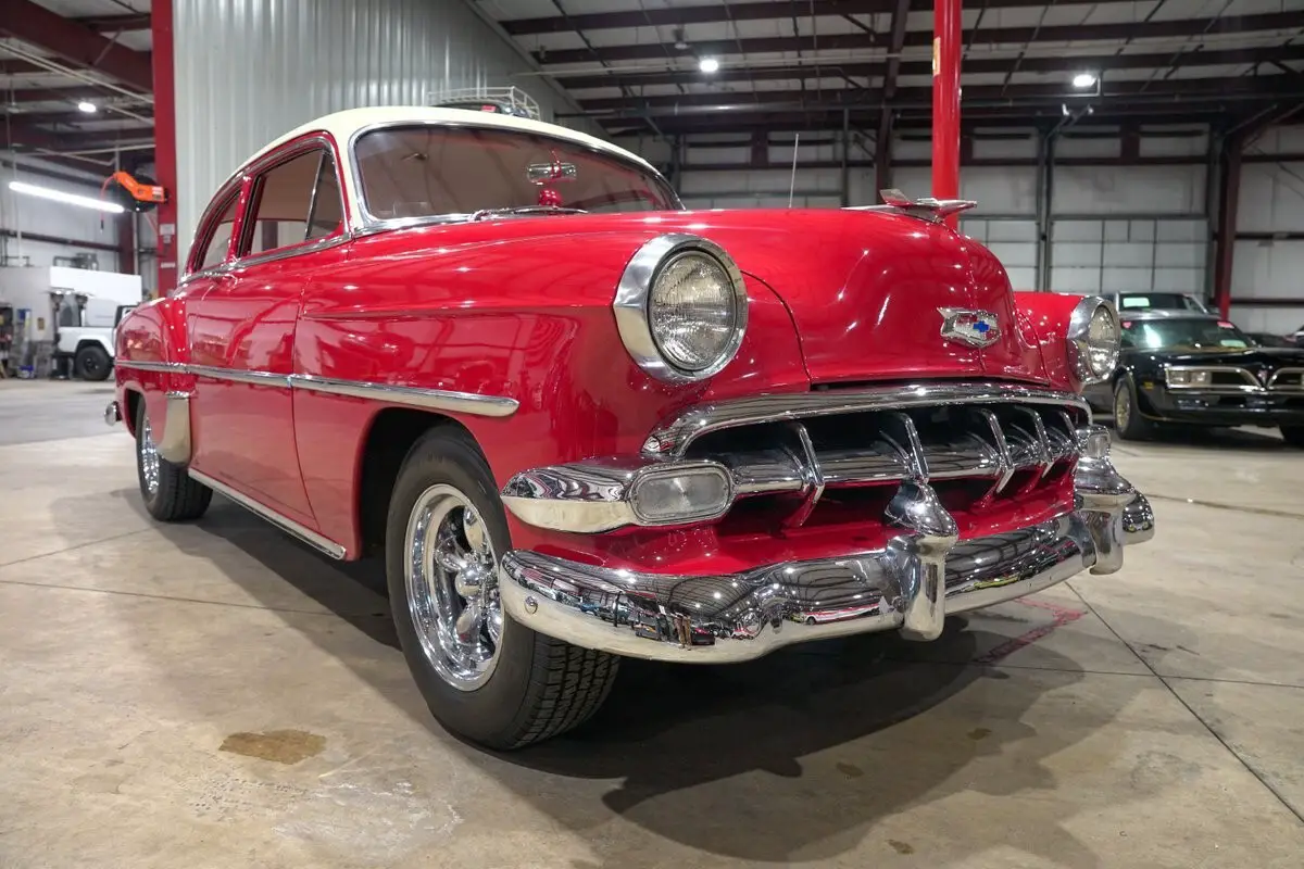 GR Auto Gallery is excited to present this charming 1954 Chevrolet 210 finished in a classic red body with a contrasting white top that perfectly captures the spirit of early fifties Americana. The bright two tone exterior is complemented by chrome bumpers and tasteful chrome accents that highlight the car's clean lines and timeless design. This Chevy presents with the kind of curb appeal that instantly transports you back to a simpler era, when style and character mattered just as much as the drive itself.