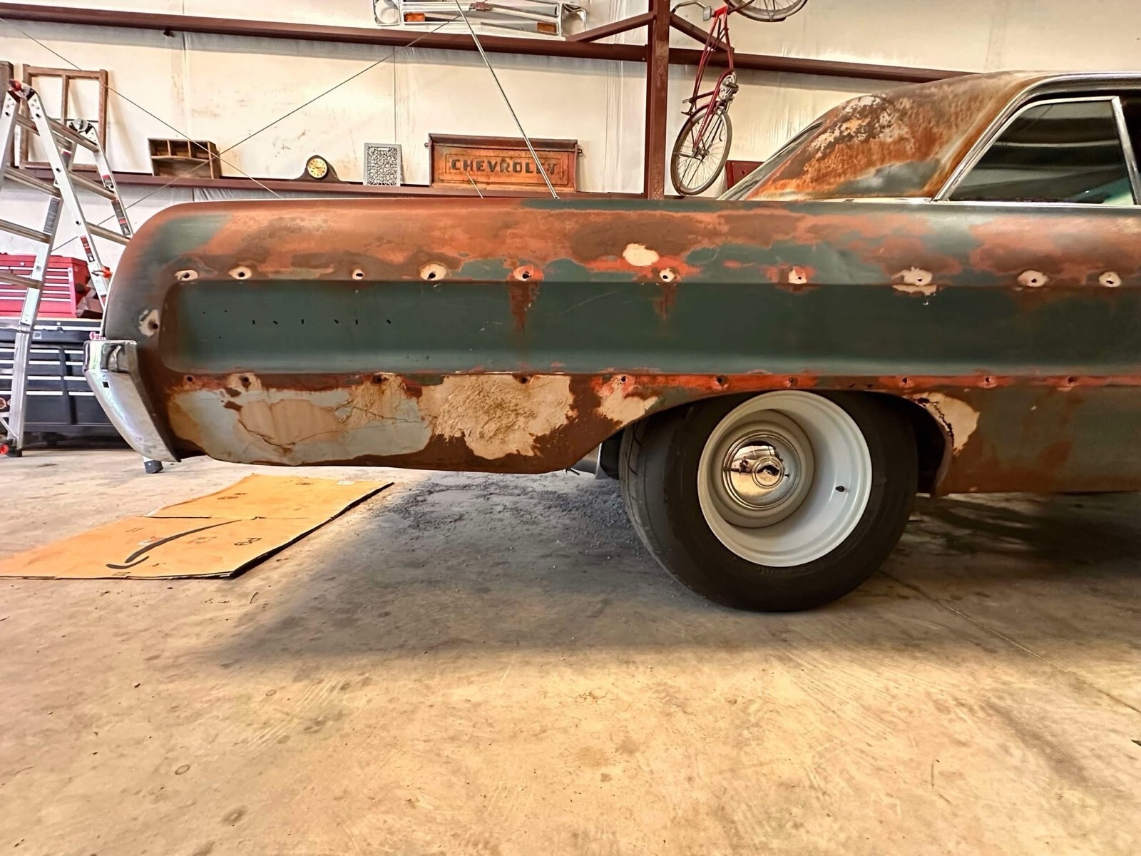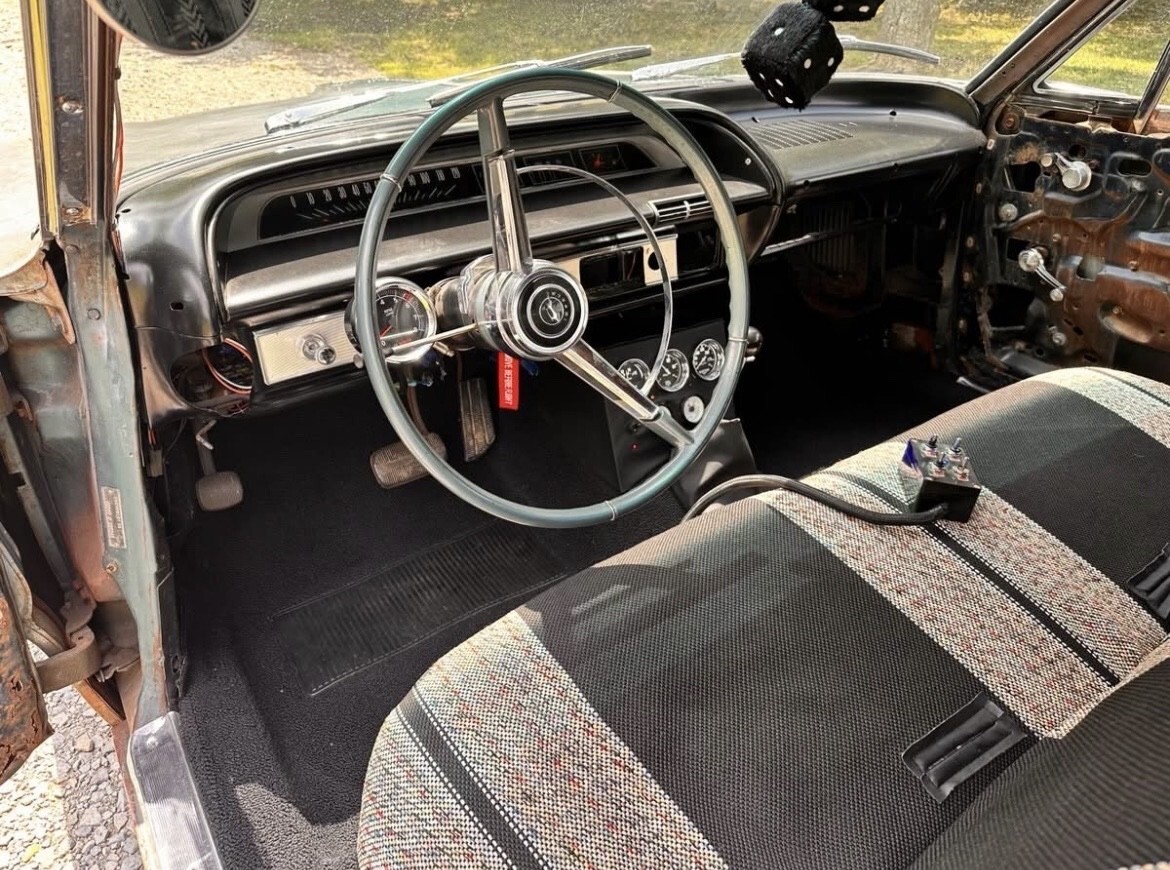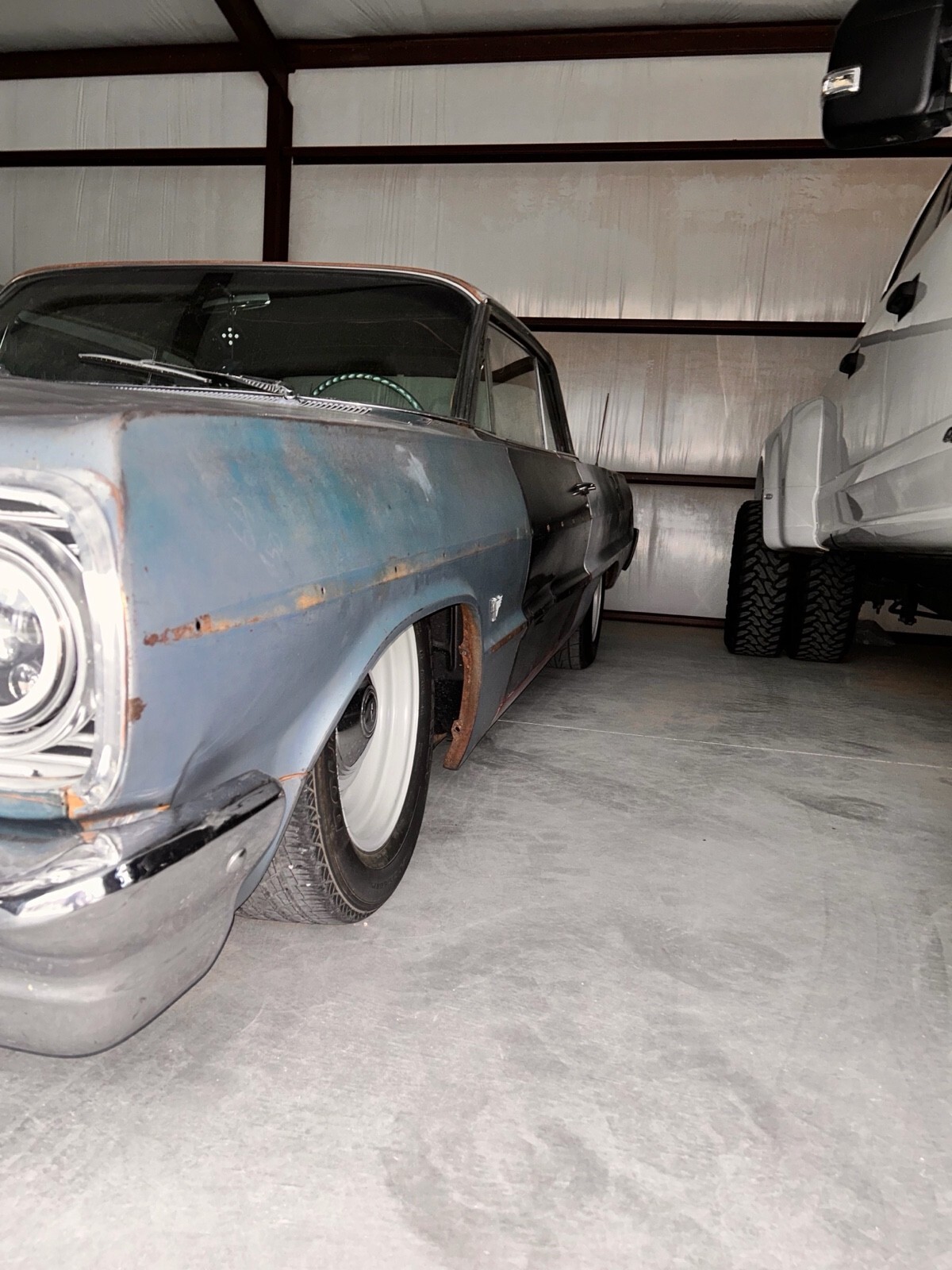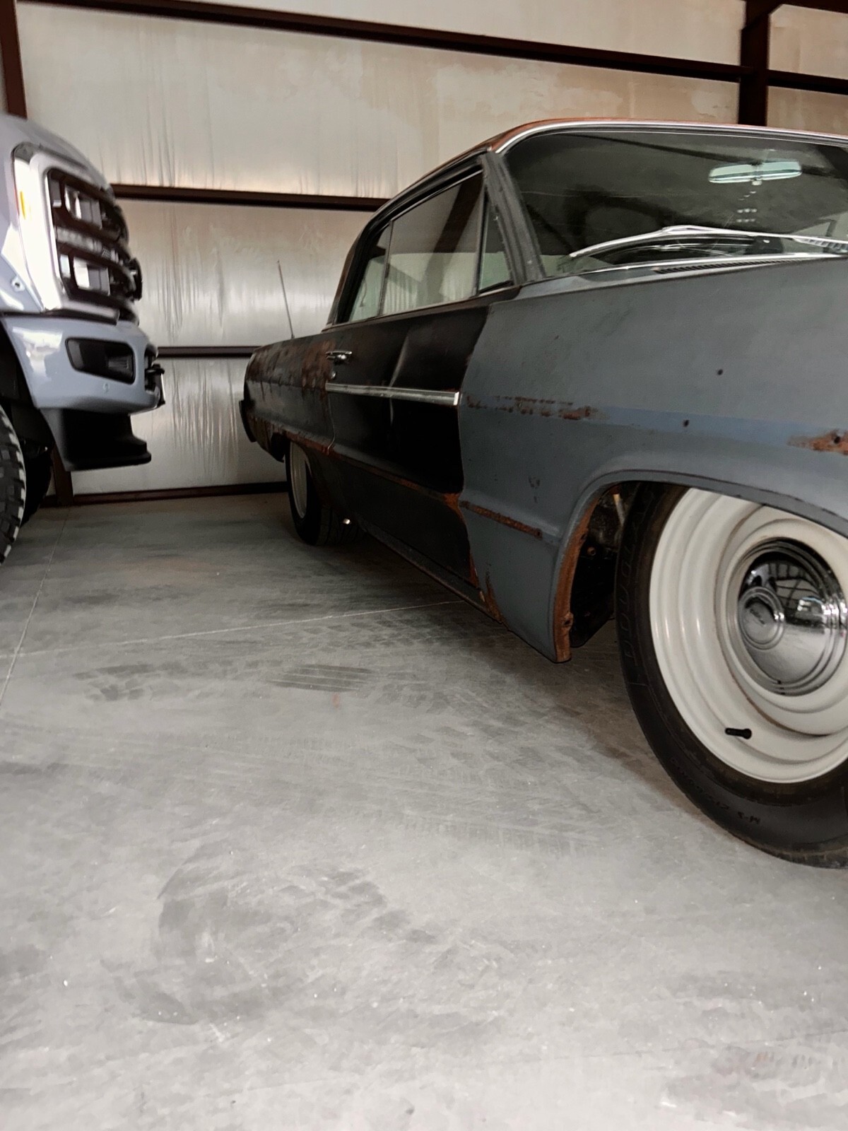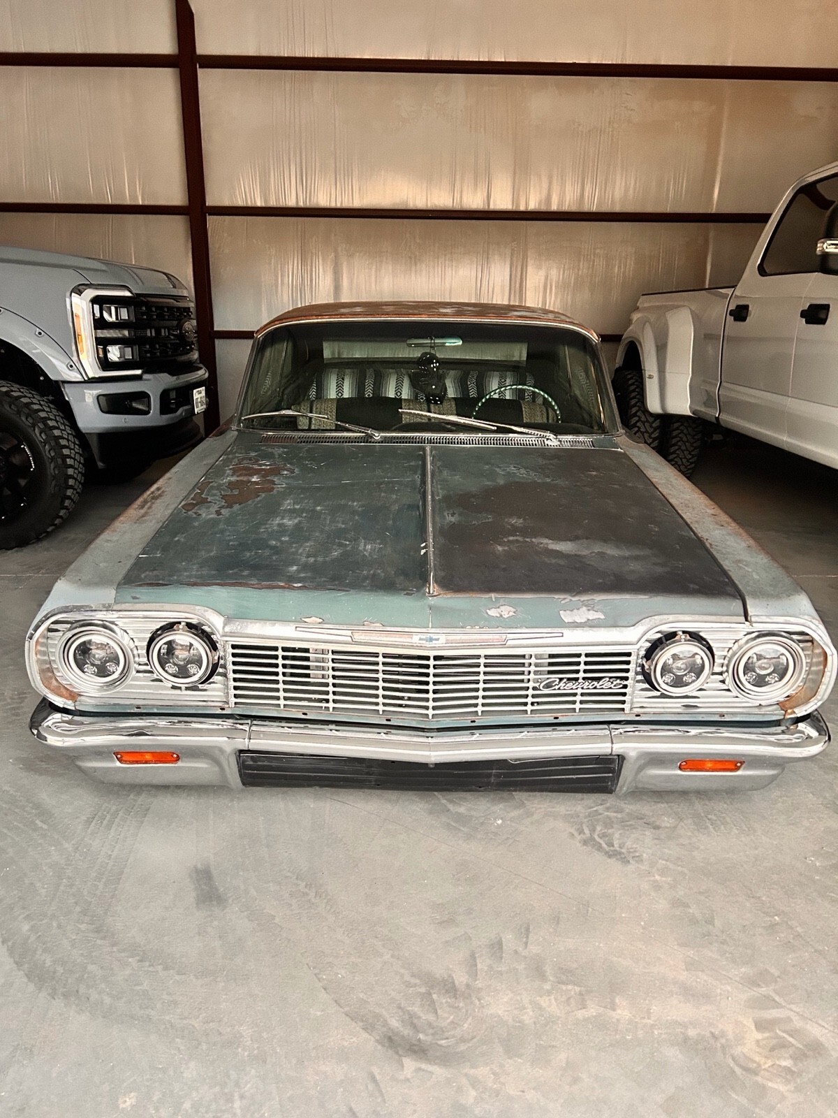 1964 Chevy Impala Running and driving project. LS swapped 5.3 from a 2001 Tahoe. 460LE transmission. Tuned to remove VATS and rear O2 sensors. Engine stock otherwise. Aluminum radiator, new exhaust, Tanks Inc. tank and fuel pump, air ride with 2” drop spindles up front. Have part to revert back to stock spindle. It will lay frame when aired down. Custom 4 Link rear. Still needs shocks mounted in the rearend. 8.8 Ford 4.10 limited slip rearend with disc brakes. 4 wheel disc brakes with aftermarket booster. The floors could stand to be replaced but were mostly there. Trunk floor is cut out and needs to be replaced. New carpet, worn out original seats have been covered with blankets and a seat cover. It is an original AC car but it obviously doesn’t work. I have all the vents but they need work as well.