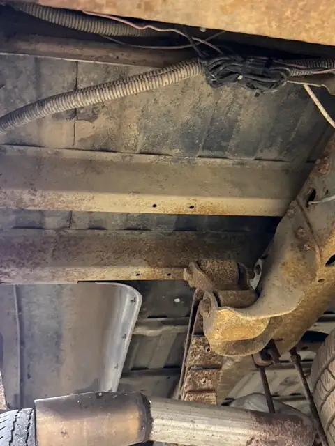 Sheet metal is all original GM metal, rockers and cab corners, as well as entire underside are exceptional and free of rust of any significance. There is a quarter size rust spot above passenger side door handle. There is an area on the hood that paint has come off and surface rust has formed. There is a dent in the passenger box side, as well as some assorted small dents and dings in other areas on the body.