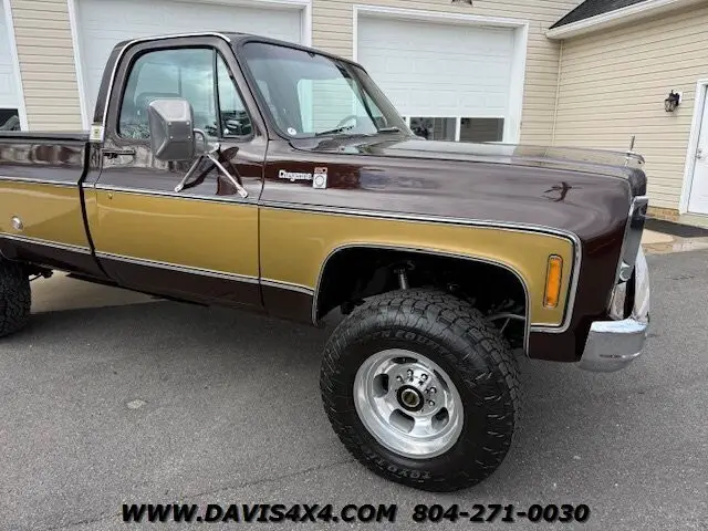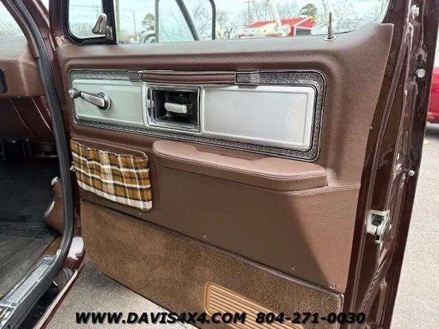 This 1978 Chevrolet K20 Cheyenne Squarebody pickup is a true frame-off restoration finished to an exceptional standard, powered by a 6.2 L86 engine with active fuel management turned off. producing approximately 420 horsepower paired with a modern 10-speed 10L80E overdrive automatic transmission. The truck is finished in iconic Fall Guy-inspired colors, featuring a Root Beer Brown and Cordova Brown two-tone with a metallic gold center stripe and Race Track trim, all laid down in an extremely high-gloss, show-quality finish. Paint protection film has been professionally applied to the front of the hood and lower rock areas for added durability. Every door assembly has been replaced with new trim, moldings, and weatherstrips, and has been precision-adjusted to close like a brand-new truck. Inside, digital gauges accurately display just under 6,000 miles on the restoration and drivetrain, while the interior is a true showpiece with custom plaid-style upholstery executed in a tasteful, period-correct manner, matching door panels, a clean dash, tilt steering column, and a well-fitted center console with cupholders and 12V power. A retro-style Bluetooth radio maintains a factory appearance while feeding a JBL amplifier and custom Kicker subwoofer enclosure. Additional highlights include a brand-new Vintage Air heating and air conditioning system, full dual polished stainless exhaust, spray-in bedliner with carpeted bed mat and fitted bed cover, flawless glass throughout, and heavy-duty 8-lug running gear with a 14-bolt rear differential and chrome differential covers front and rear. The truck currently sits on a modest lift that can easily be adjusted, and additional upgrades such as power steps, steering enhancements, or brake system improvements can be accommodated if desired. One particularly unique feature is the professionally installed center two-tone section, which is actually a removable wrap--allowing the truck to be converted to a full Cordova Brown finish in the future for an entirely different look. The fit, finish, and execution throughout combine classic Squarebody style with modern fuel-injected reliability, offering turn-key drivability without the headaches of vintage carbureted setups. Recreating this truck from a rust-free original today would easily approach a $200,000 retail build with a 3-5 year timeline, making this a rare opportunity. Transportation assistance is available nationwide and internationally for the next owner.