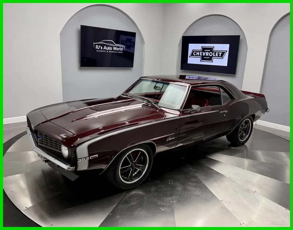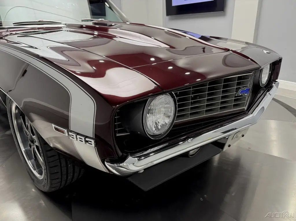 1969 Chevrolet CamaroX11 Pro Touring Styled383 Cu In Stroker V8Holley 4-barrel carburetorElectronic ignitionPainted and highly detailed engine compartmentHeaders, dual exhaustAluminum radiator with electric fansTremec 5-Speed manual transmission with overdriveQuick ratio power steeringTubular control armsHotchkis front coil springHeavy duty sway barBMR sub frame connectorsBeautiful undercarriageFour-link rear suspension with sway barAdjustable coil over shocksPosi rear end with 3.73 gears4-wheel power disc brakesAmerican Racing VN472 Burnout WheelsNew Continental Extreme Contact Tires, 235/45/17 front and 255/45/17 rearBeautiful Black Cherry paint with silver stripesCowl HoodRear deck spoilerDual chrome sport mirrorsHolley LED headlightsRed Houndstooth TMI Low Back Pro SeatsDakota Digital HDX GaugesTMI center console, black leather and brushed chrome14.5-inch steering wheelTilt steering columnCold Vintage Air Conditioning with R134a refrigerantAM/FM radio.Built right with the best parts! This AMAZING '69 Camaro is ready to be the envy of your neighborhood! Call us today.Finance options available and worldwide shipping can easily be arranged.