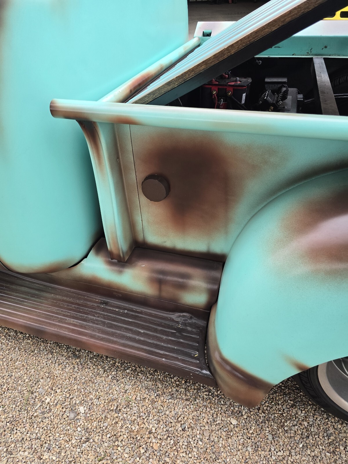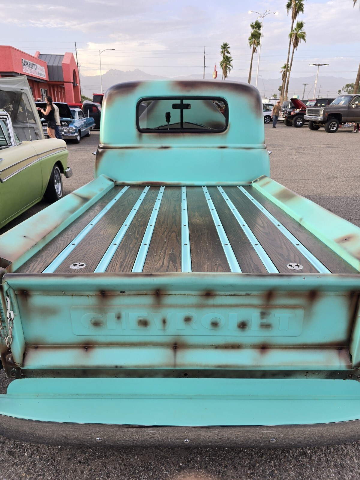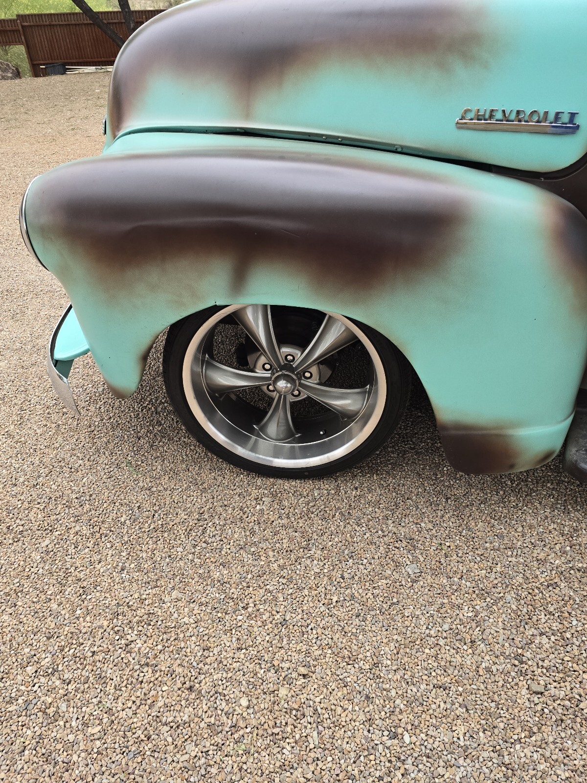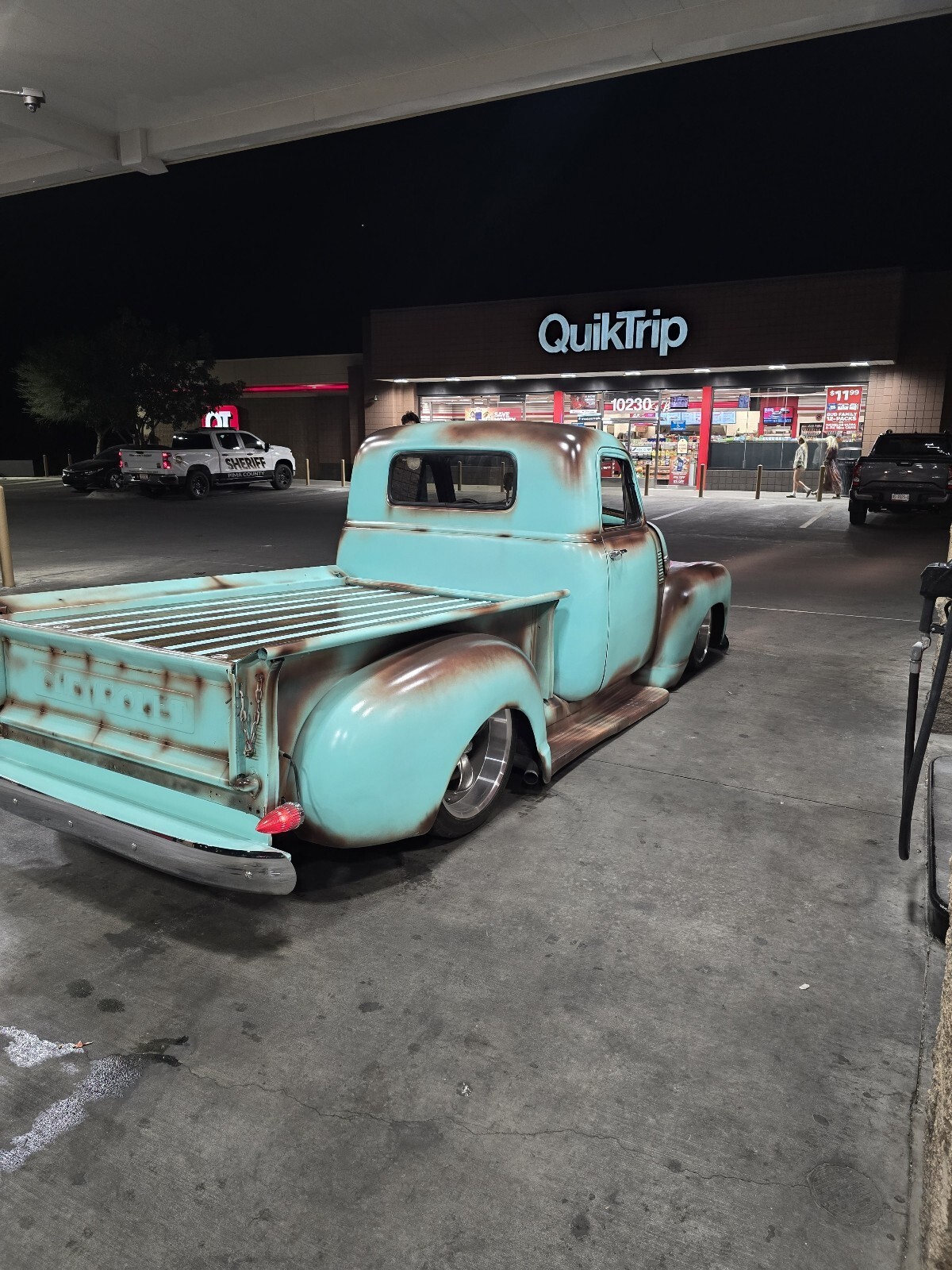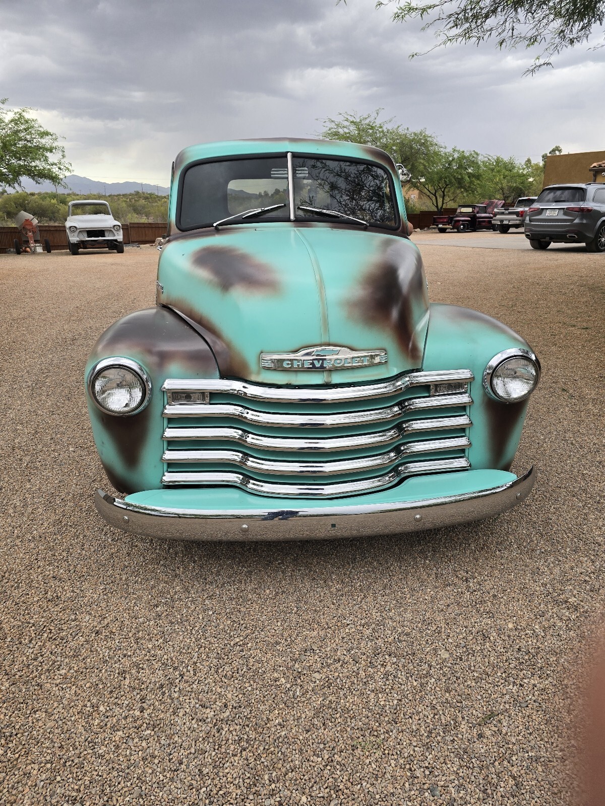 Fully built 1952 Chevy 3100 combining classic patina style with modern performance and comfort. This truck is bagged, LS swapped, and done right—it runs and drives great and turns heads everywhere. Under the hood is an LS3 with a clean, well-organized engine bay, paired with a strong and reliable modern drivetrain that makes it an easy cruiser. It sits on air ride suspension with a custom rear 4-link setup, lays out nicely, and drives smooth aired up, with a clean and functional frame setup. The air management system allows you to adjust each bag individually, with a digital gauge mounted in the dash to monitor pressure, along with manual knobs to fine-tune each corner. The exterior features a turquoise/teal patina finish that keeps the truck’s original character while giving it the perfect stance. Inside, the truck has a fully redone custom two-tone interior with a brown diamond-stitched bench seat, matching door panels and headliner, Dakota Digital gauges, and a custom steering wheel. It also has a full custom audio system including a Rockford Fosgate head unit, Rockford Fosgate amps, and (6) 8” JL Audio subs, all cleanly installed and sounding great. Overall, this is a well-built restomod that blends old-school style with modern upgrades, making it perfect for cruising, shows, or anyone looking for a unique classic that’s already done right.