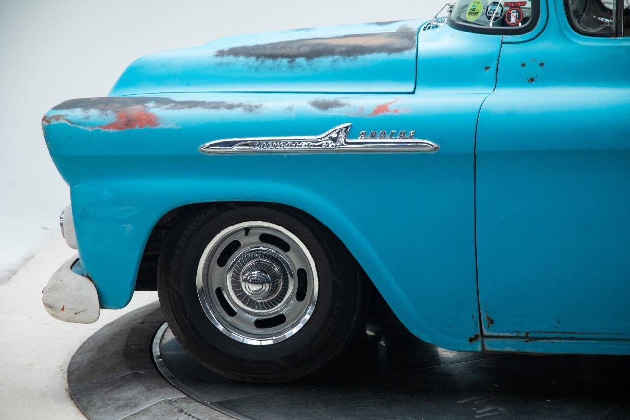 1958 Chevrolet Apache known as E-pache EV conversion 2020 NetGain HyPer 9HV engine Seven Tesla Model S batteries (80-90 mile range) GM MA 5 speed manual transmission out of 2008 Chevy Colorado Orion battery management Canadian EV transmission adapter plate 2008 Chevy Colorado 5 speed transmission TCI front suspension with Ridetech coilovers Wilwood disc brakes in front with custom master cylinder mounts Stock 3:55 rear axle 15x7 Voxx Ralley wheels with 225/75/15 Hankook Kinergy radial tires Montana truck with Authentic patina Factory seating interior with upholstered black/grey vinyl bench seat Factory gauges and stereo Featured in Street Trucks magazine and EV Builders Guide magazine in 2022 Featured at the SEMA show in 2022 Comes with adapter cord to a 220v outlet Be different! This truck gathers a crowd anywhere it goes! Conductive Classics built the truck and this is taken from one of the articles written about it; "The goal was to
