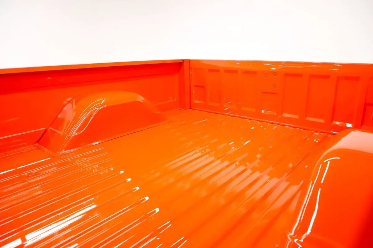 EXTERIOR: Restored to look brand new! The body was off the frame and stripped to a bare cab. The body work is outstanding, it's straight and there's no rust or damage. The door latches were replaced and the doors shut like new. Repainted nostalgic two-tone hugger orange and white, it's