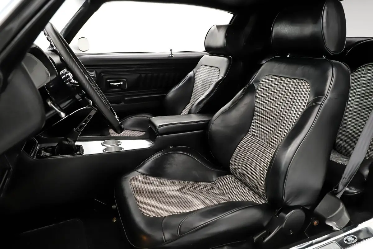 INTERIOR: Sporty, comfortable, and tastefully restored! The sport-contoured seats front and back are a highlight, upholstered with classic houndstooth inserts that add the perfect touch of nostalgia. The factory-style side panels look fresh, the carpet is clean, and a new headliner finishes it off nicely. The dash pad has been replaced, and the instrument panel has been upgraded with a full set of Phantom gauges for a crisp, modern look. It's been thoughtfully updated with Vintage Air climate controls, an electric e-brake with push-button operation, and a retro-style stereo. A custom center console adds both function and style, featuring cup holders, an armrest, and a billet 6-speed shifter! A sporty custom steering wheel sits on a tilt column. It also has power windows, retractable front shoulder belts, working interior lights, and Z28 floor mats. A great blend of classic muscle car feel with modern comfort!