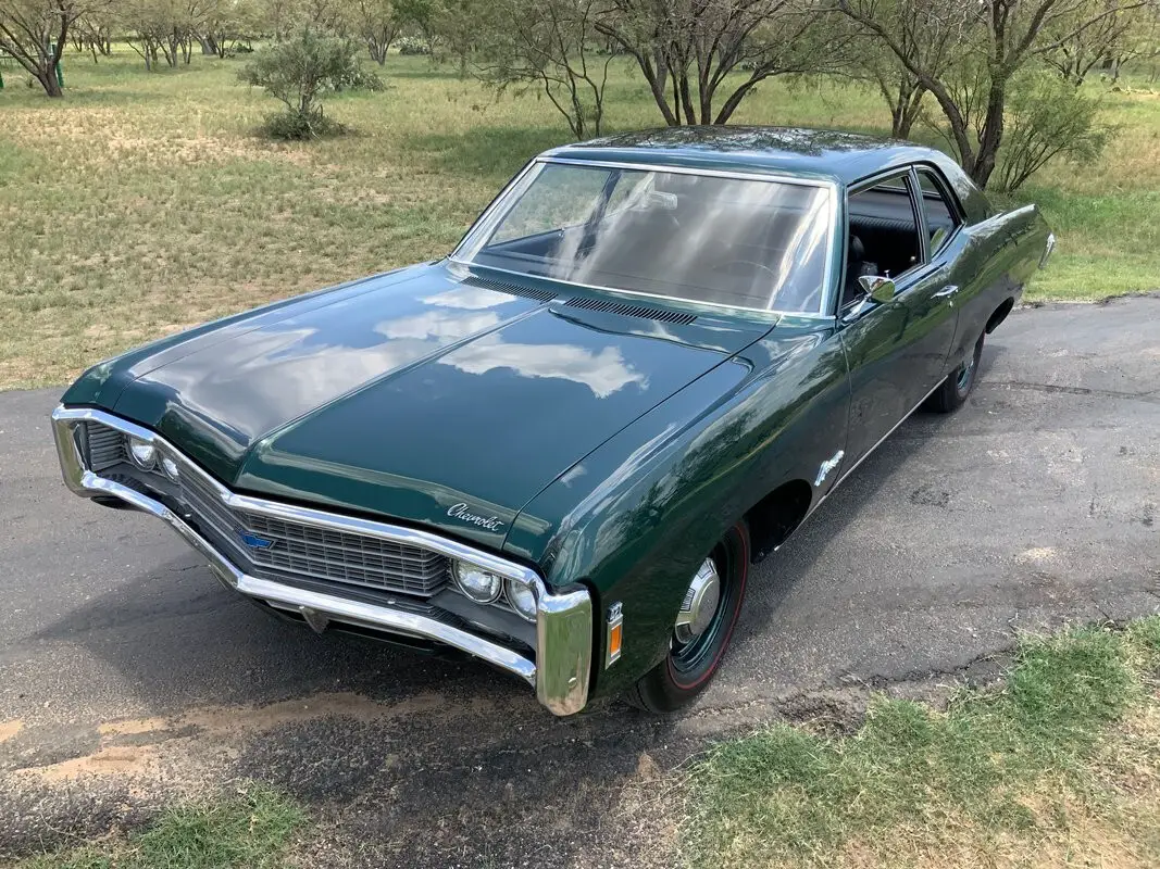 Welcome to Street Dreams as we celebrate our 27th year in the classic and muscle car business. The 1960's were some of the most exciting years in the history of the automobile. Most enthusiasts are aware that the 'muscle car' was born when Pontiac stuffed their full-size 389 V8 into the intermediate Tempest for the 1964 model year. But the lesser-known full-size performance cars also peaked in the 1960's, only to vanish with the changing tastes of a new decade. This slick Fathom Green 1969 Chevrolet Biscayne is a fine example of a fascinating subset of the full-size genre; the sleeper. There isn't much to distinguish this beast from Granny's Biscayne with the 6-cylinder engine and 3-speed, except those small 427 callouts on the front fenders! That's right, this beauty is sporting a correct 427 big block (BCN 3963512) topped with the Winter's foundry high rise factory aluminum intake manifold, Holley carburetor as well as a Muncie 4-speed manual transmission, 12-bolt rear end, front and rear sway bars, power steering, tilt steering column, and radio block-off plate. This two ton terror was set up to run, just as many racers did in the day, and it is an absolute blast to be shifting a 4-speed in a car this large. This was the last year that you could order a 4-speed manual transmission in full-size Chevrolets, and by the early 1970's American manufacturers had abandoned the idea of powerful behemoths. Our classic features good paint, trim, chrome, glass, dash, upholstery, headliner, and carpet. This beast is sporting the steel wheels and dog dish hubcaps that old timers remember on the truly strong cars. Helmet and slicks not included! Street Dreams (830-997-1950) is a full service dealership that can assist with worldwide delivery, insurance, and financing options. Thank you for looking.
