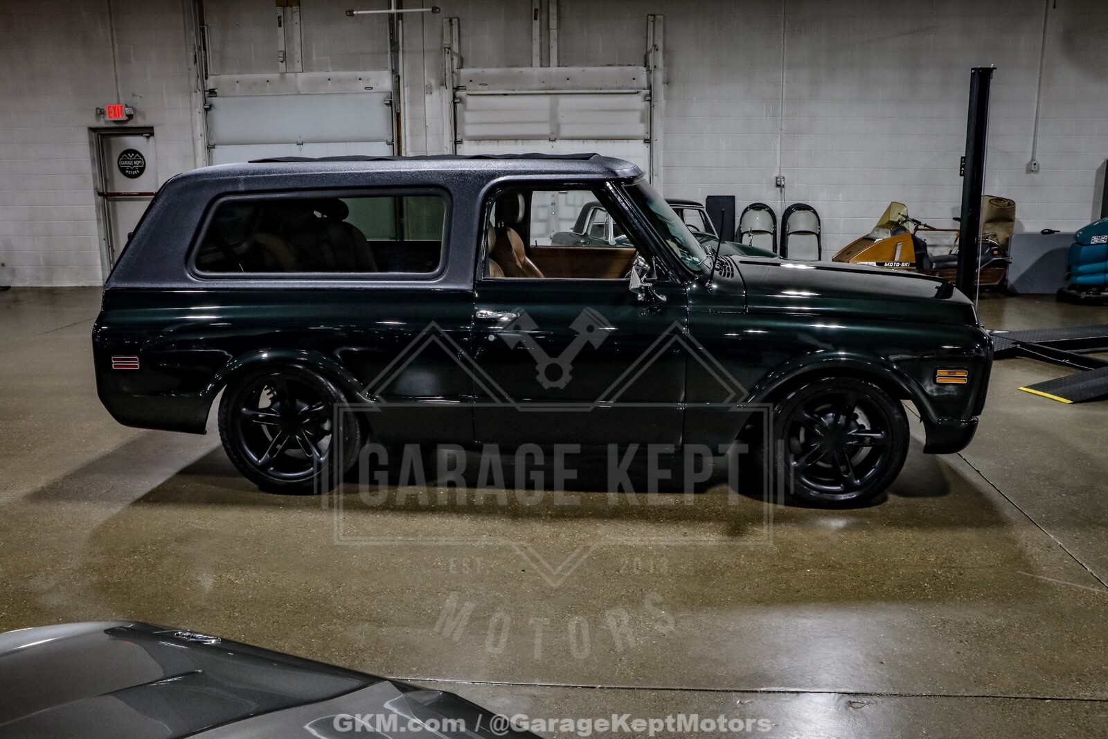 The exterior is further enhanced by staggered, powder-coated SSR wheels that complement the dark green finish and give the truck a confident, road-focused presence. A Legacy ragtop sunroof adds open-air versatility, offering a convertible-like driving experience while preserving the classic removable-top Blazer spirit. The result is a build that feels both nostalgic and contemporary.