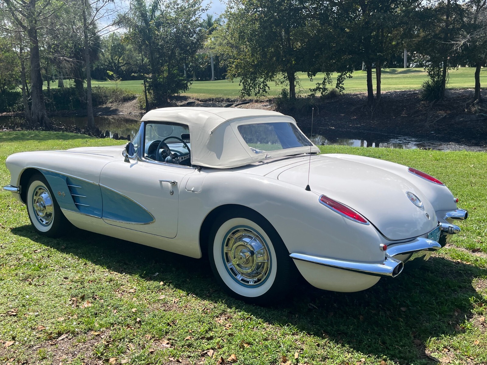 Factory Power Windows, Factory AM Radio, Original Owners manual & Window sticker. The White Paint & Chrome Glows all the way around. Clean Florida Title in hand.