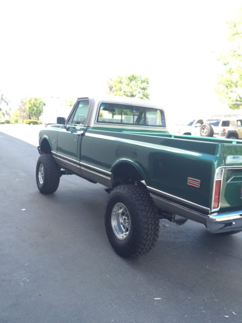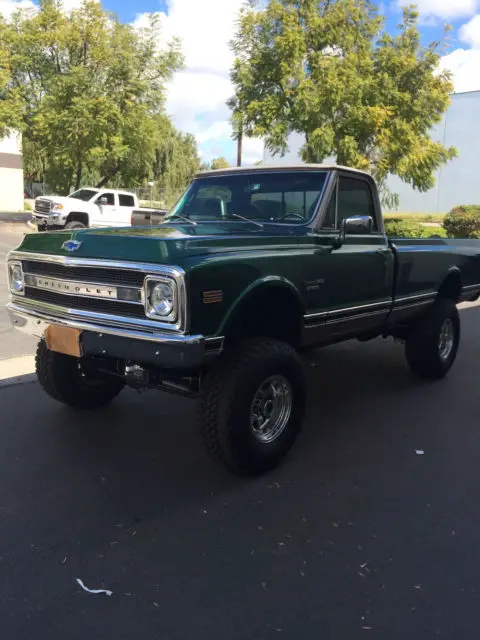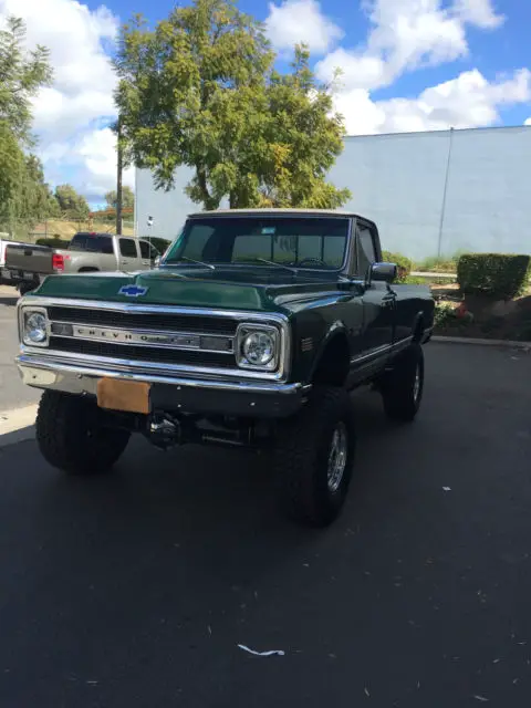 This 1969 Chevy C30 has a 350 Cubic Engine, Eddle Brock Carburator, Headers, Surpintine Belt Conversion, A/C, lots of Chrome, Aluminum Radiator, Optima Battery, Dual Exhaust, Electric Fans, Engine is not a high performace engine but only been dressed up. New Interior, Door Panels, Seat, Dash Board, Chrome Steering Column, Chrome Steering wheel with Wood Grain, New Instrument Cluster n Gauges, Kenwood Stereo, Focal Speakers w/ Amp. HID Light Conversion, Raptor Bed Liner, Custom Amp Research Steps, New Wiring Harness, (4) Bilstein Shocks, 6" Suspension Lift w/ Deaver Leaf Springs, (4) Mud Terrain Tires Big Horn Maxxis LT 315x75R16, Aluminum Ultra 16x10 Wheels, runs good, has minor defects here there, its not 100% perfect.