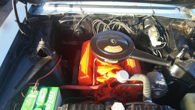 Factory 283 V8 3 speed column shift, manual steering, manual brakes.