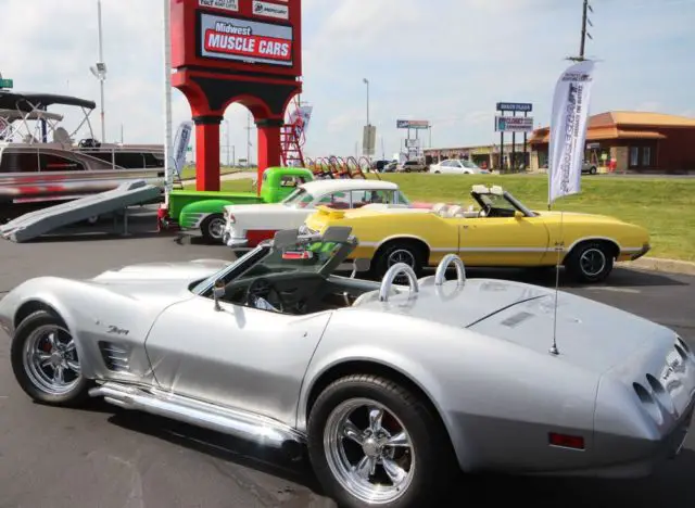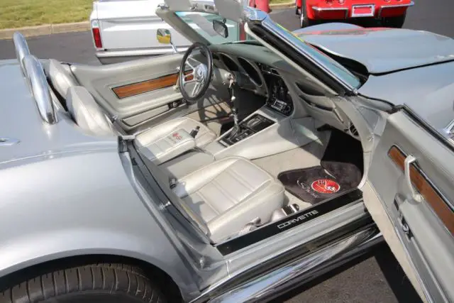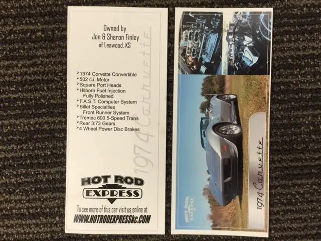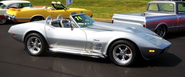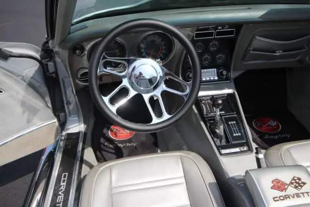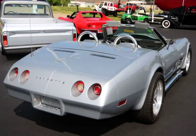 Stunning 74 Resto-Mod Corvette Convertible, Fresh Build by Professional Hot Rod Shop. New 502 Crate Motor, Custom Hilbourn Electronic Fuel Injection, Billet Specialties Front Runner System, Air Conditioning, 5-Speed TKO Transmission, Hooker Headers, 4 Wheel Disc Brakes, Custom Alloy Wheels, Beautiful Silver Metallic Paint,Factory Silver Interior, Black SoftTop and also has Factory Black Removable Hard Top, Multiple Award Winner. Needs Nothing!