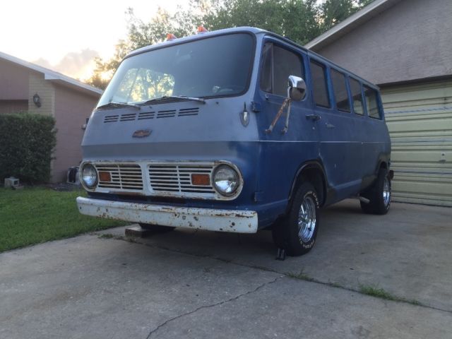 Awesome van for sale. Very rare! Finish the bodywork and paint it or drive it as a rat. Has a 283 that runs good. Brakes need work. I put in a new master cylinder but the rest of the brake system will need to be gone through. New Cragar wheels with new tires. Floors are in great shape. Van has been in Florida since 1969. Owned by same family since then. Original radio and horn still work! All lights and signals work as well. Glass is in great shape and windows work as they should. Still have the original protect-o-plate in the glove box. Van is for sale locally so I reserve the right to end listing if it sells. Don't miss out on this one. Quick project that can be on the road after a weekend of work (brakes).