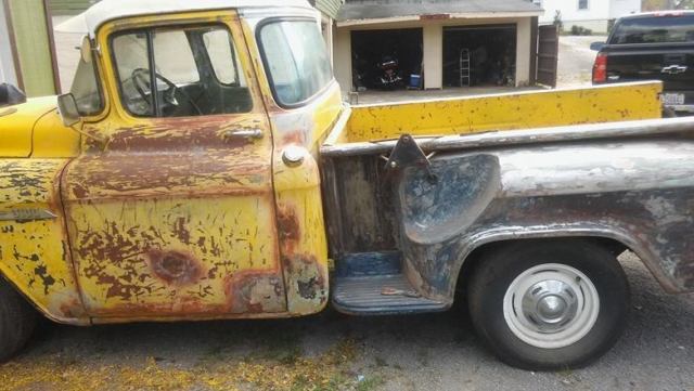 1955 chevrolet 3100..good condition... Wooden bed..club cab window.. Partially sanded/ canary yellow