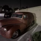Too many projects too little time...I've had this delivery for 40 years, first picture was taken a year or two after I got it, and it's been shedded the whole time. I did some interior work and drove it for years, parked it when some other projects came along and never got back to it...It hasno bondo and the only rust on the body is some recent bubbles on the drivers rear fender (see pic) It does need some front floorboard work (pic) but the rear is good (pic)...The hardwood framing is solid and you can see from the inside there are no dents...I've posted a lot of body pics to show how few dents there are and that some scuffs aren't dents...The pics tell the story and if you want more pics I can send them, was only allowed 24, so a lot of the chrome isn't shown, as well as the door, kickand rear panels and seats...No headliner but I have the bows, and the wood flooring for the back...Seats are the original butterfly and all there...The chrome corners on the front bumper aren't original but came with it. I mounted the rear center bumper guard that flips down to open the door on the front bumper for pics...Most of the chrome is in great shape considering the age, the rear bumper the only exception but is straight and solid... One grill barend is rusty and aspot on the bumper and under one corner guard the chrome has pealed (can send pics) Interior trim is all there, still looking for the sunvisors and headliner and will include them IF, that's IFI canfind them.The hubcaps and wheel rings are good except one hubcap has more pitting than the others, which aren't bad...The stainless rocker trim has some dents as well as one of the rear bumper guards...I found 3 new lever action shocks in the early 80's and put them on...It was converted to 12v with a 230 when I got it but the transmission and drivelineare original...Currently the left rear brake is stuck...You can call me with questions or ask for more pics at 7o1-52o-2263...No warranty is expressed or implied, as is...I've tried to described it honestly and will answer any questions the same...Pick up is your responsibility but Ican help load...A nonrefundable deposit is required and payment is due within 7 days of auction end...Can remain here for 3 weeks if payment is made in full...Thanks for looking!