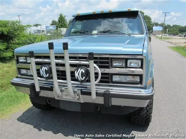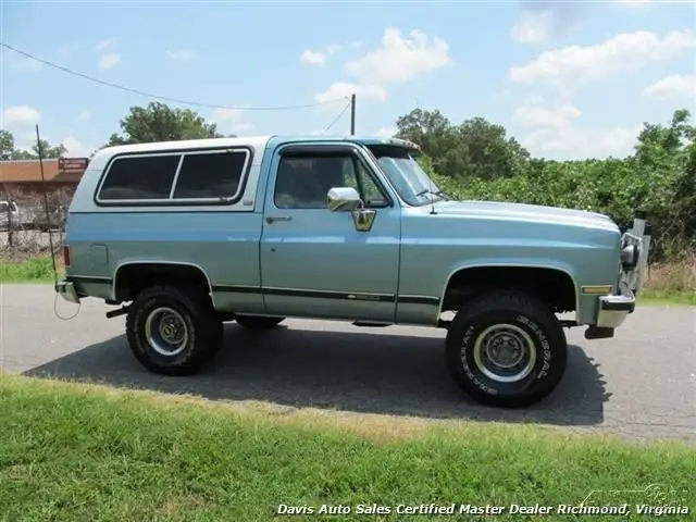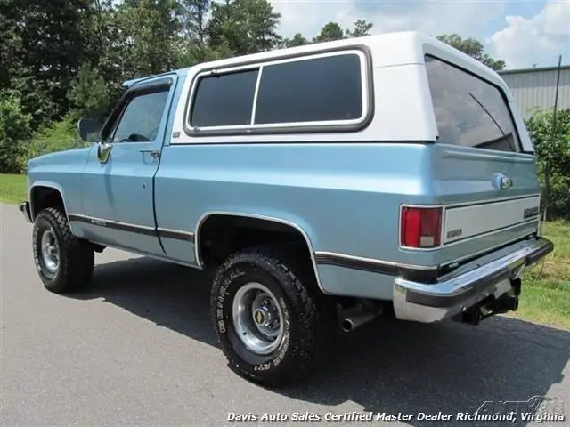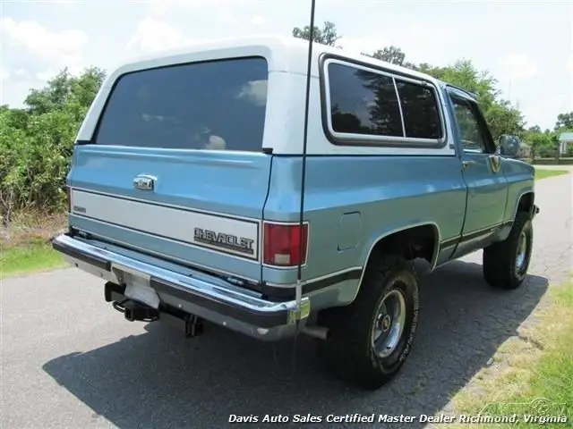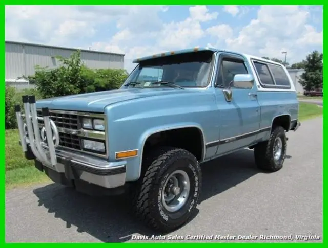1991 Chevrolet K5 Blazer 4x4. 5.7 350 V8, automatic trans, Silverado package, loaded power options interior. Another incredibly solid square body find. This was a locally owned truck, lifted approximately 2 inches, riding on brand new 33 in all terrain tires, wrapped around rally wheels, engine runs out strong, transmission is a Jasper replacement. This vehicle is about as rust free as you find these classic trucks. AC even still operates, factory jack and all decals still under the hood (pictures to show), headliner is even intact. This is a very non-messed with well preserved classic SUV. Spare tire, clean Valore interior leather wrap dash, removable top, and so much more. About the only negative to this truck to really speak of are the common slow power windows, but even the rear window operates perfectly and the tailgate etc. Call for details about this truck and any other photos that you may want. We will be happy to provide!!! We have just serviced and inspected this truck and performed quite a bit of maintenance. Ready to enjoy.
