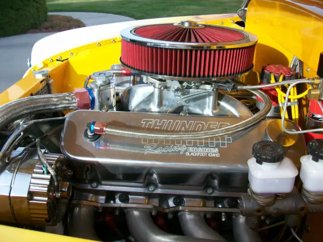 Now let's talk about what is waiting for you under the hood. This big block beauty can run hard and fast or cruise with an attitude to your local drive- inn. This blue printed, dyno-tuned power plant is willing to do all that you ask. With 472 cubic inches generating 620 horsepower, all you need to do is buckle up in the five point harness, check the trans. brake, feel secure in the custom NHRA legal roll cage, look at the easily visible Autometer gauges, and get ready to roll down your favorite highway. A you monitor the shift points from the easily visible shift lights, wipe that smile off your face and pay attention. Yes, it can go very fast but this fun ride can also cruise the streets because it has excellent street manners and will provide you a sense of fun and fulfillment that you may have thought you would never feel again. Darn, this is one fun ride!