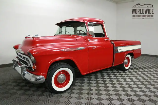 Worldwide Vintage Autos is pleased to present this ultra rare 1957 Chevy Cameo 3124 V8 Truck. Only2,244 built! The most desirable collector truck on the market! This is the one you want! Red, Restored, Big window, Original V8 truck!, etc. “The forward looking collector will note that classic pickup trucks are just getting started - and there are plenty of underpublicized specimens out there” Autoweek Magazine February 2016. We scour the country for vintage cars and trucks like this and we rarely come across one like this! You must see and drive this rare Cameo!