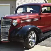 The tail lights have been replaced with 1939 Chevy units, because they look cooler! The windshield and rear window were replaced with new glass and rubber in 2003. The side windows are in good original condition, although one of the rear windows is cracked. The weather stripping around the doors is bad, and much of it has been removed. A new weather stripping kit is included with the purchase of the car. The rear bumper was remounted to be closer to the body. The original front bumper has been removed but is included with the car.