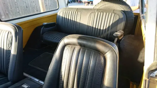 The paint looks like someone tried to freshen it up by putting a new coat on the truck, but it is in the original ochre yellow and matches the build sheet in the glove box.