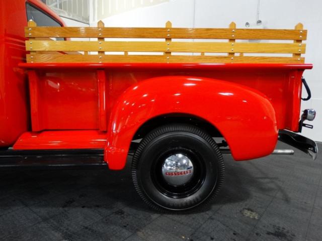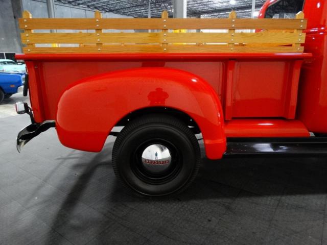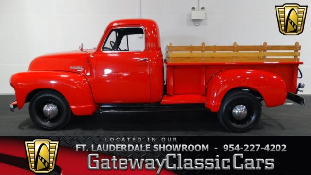 For sale in our Fort Lauderdale is a beauty of a pickup. This Stunning 48' Chevy 3600 (3/4-ton) is one of the nicest restorations I have seen in a while. The truck you see here is part of the Advance Design, the first major redesign post World War 2. The series was billed as a bigger, stronger and sleeker design in comparison to its predecessors. The same basics of this design was use in of of GM's trucks for years to come. As we look around this one you can tell no detail was missed from its flashing red paint to its lovely chrome grill, bumper and trim pieces. Did I mentions the bed? It's also trimmed nicely and wrapped with matching wooden rails around the bed of the truck. Under the hood of this particular one is a bold 1953 Inline 6 pushing out an astounding 235hp. Sending all that power to a smooth shifting 4 speed manual transmission. The interior in the truck is a nice black vinyl and classic Chevy gauges. With the 4 in the floor and the Chevy hubcaps wrapped in Firestone Radials it is ready for the open road. This truck is truly stunning inside and out, and is a defiant head turner. To see more HD pictures and video please visit GatewayClassicCars.com. For more information please call the Fort Lauderdale showroom at 954-227-4202 or e-mail us at FortLauderdale@GatewayClassicCars.com.