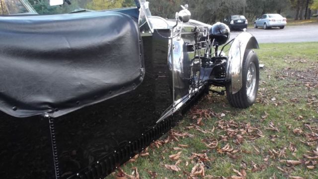 The eye-catching Boat Tail coachwork was inspired by English and French speedsters of the 1930's. The warm veneered appearance of the handpainted back deck evokes the artful beauty of these exotic European automobiles. Body is all steel throughout and the hood is crafted from durable stainless steel. A leather belt fastens the center-hinged hood just like the Rolls Royce's of the Golden Era. Restoration of this custom model was completed just a week prior to it's arrival at our Classic Car Showroom, with less than 50 miles on the odometer.