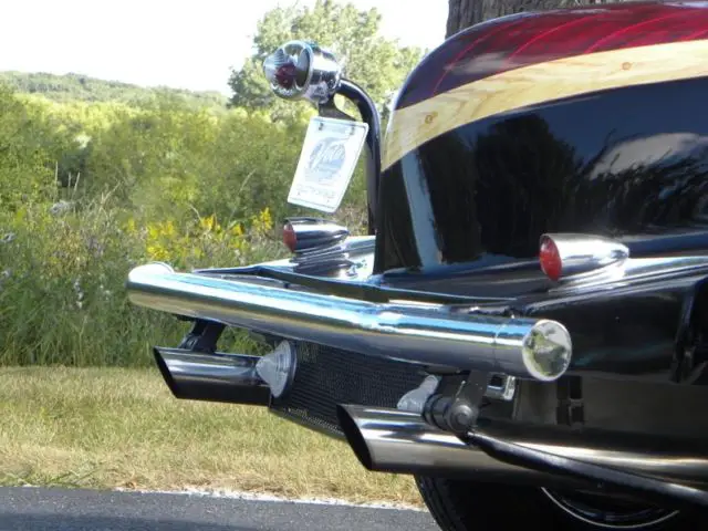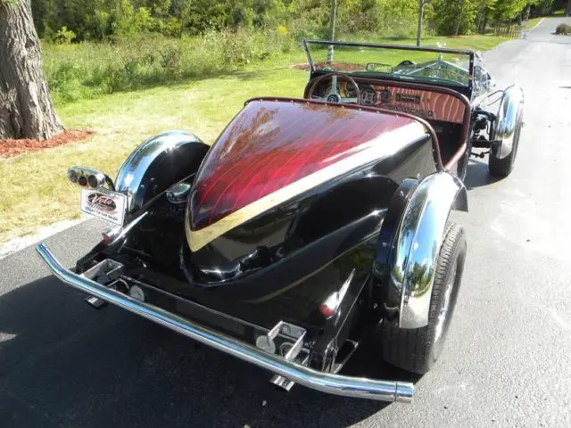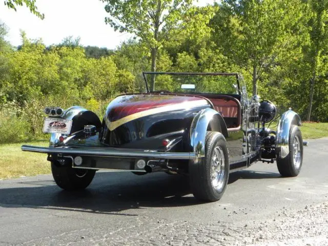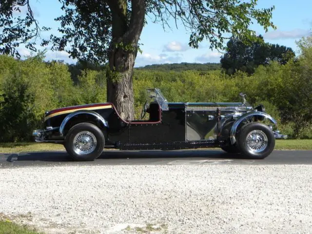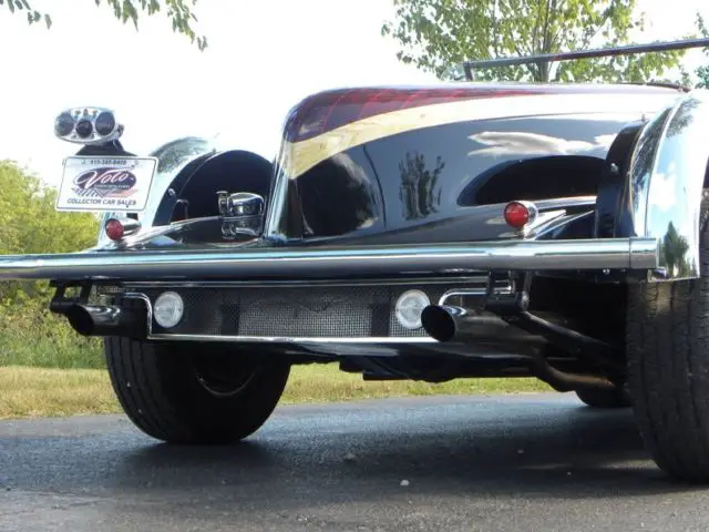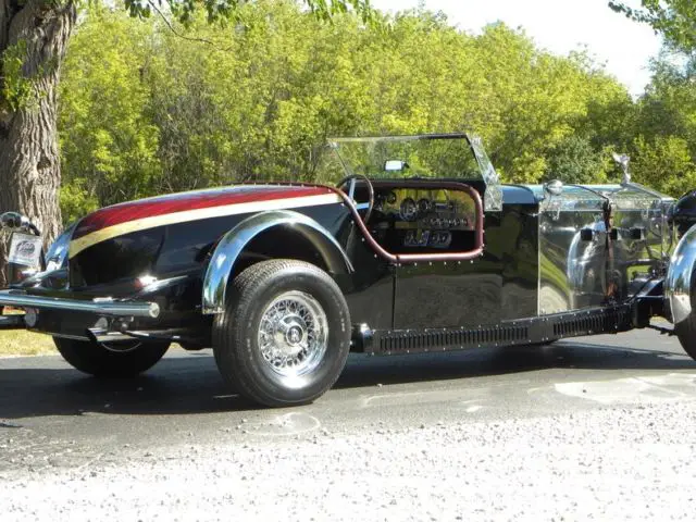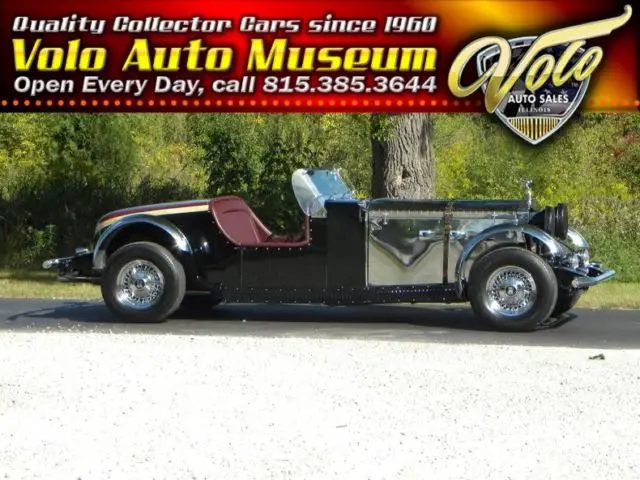 Very few custom luxury cars make a bold impression like this dazzling Rolls Royce Custom Speedster showcased here. From the unmistakable Spirit of Ecstasy astride the Rolls Royce grille to the beautifully rendered teak rear deck not a single detail was overlooked in the effort to realize a unique custom car.The eye-catching Boattail coachwork was inspired by English and French speedsters of the 1930's. The warm veneered appearance of the hand-painted back deck evokes the artful beauty of these exotic European automobiles. Body is all steel throughout and the hood is crafted from durable stainless steel. A leather belt fastens the center-hinged hood just like the Rolls Royce's of the Golden Era. Restoration of this custom model was completed just a week prior to it's arrival at our Classic Car Showroom with less than 50 miles on the odometer. Performance is delivered by a strong running and dutifully maintained 1955 Chrysler V8 Hemi. The result is effortless power that's both assertive and exciting. Modern 4 speed automatic transmission makes this luxury custom a pleasure for virtually anyone to drive. A testimonial of this car's appeal is indicated by several Rolls Royce Club event badges decorate the lower panel of the radiator shell dating from 2001. The Speedster's rakish allure continues into a deceptively roomy cockpit trimmed in genuine burgundy leather. Unlike many classic 1930's era speedsters the interior provides enough room for the driver and passenger with plenty of elbow room to spare. The spacious cockpit accommodation allows this car to be driven by a much broader range of owners who may have once considered a classic or reproduction speedster but felt to cramped to drive. For those of us that can relate to this experience your Classic Sports Car has finally arrived. If you desire a unique car with abundant character and class call 815-323-6536 to speak with our Classic Car Specialists now! "Spirit of Ecstasy" Ornament Dual Cowl Lamps Walnut Rolls Royce Steering Wheel Sunpro Tach and Temp Gauges Weiand Intake Removable Cvt. Soft Top Rotunda A/C Dual Fog Lamps Rolls Monogram Knockoff Wire Wheels Driver's Sidemount Spare Tire Dual Weber 8867 Carbs AM/FM 8 Track Stereo Removable Luggage Rack Seat Belts Weber 4 Brl